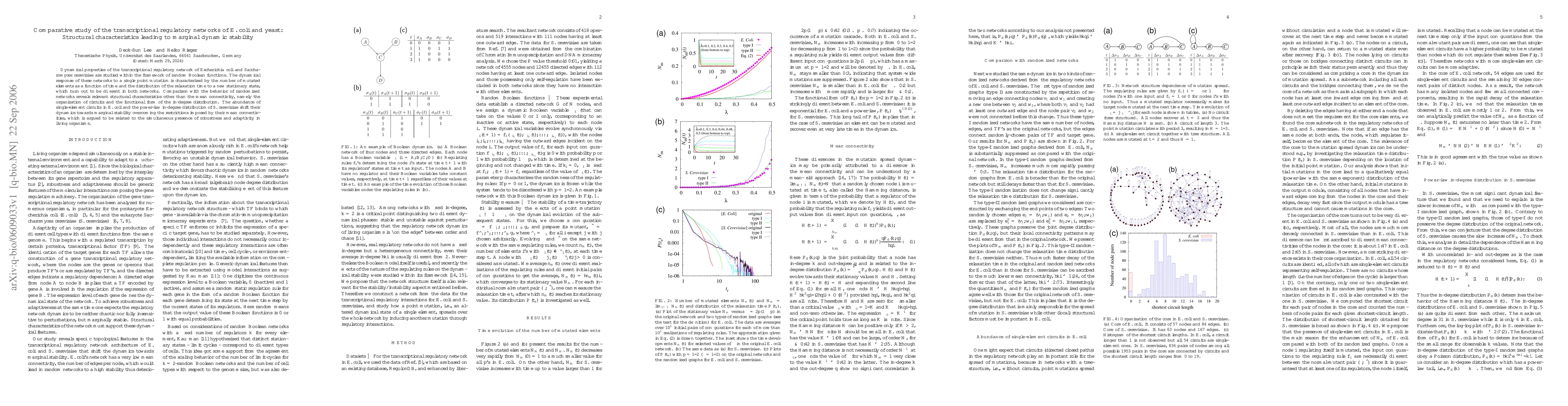 This study compares the transcriptional regulatory networks of {\it Escherichia coli} and {\it Saccharomyces cerevisiae}, revealing that structural characteristics like circuit organization and in-degree distribution influence their dynamic stability, leading to marginal stability despite differing mean connectivities.