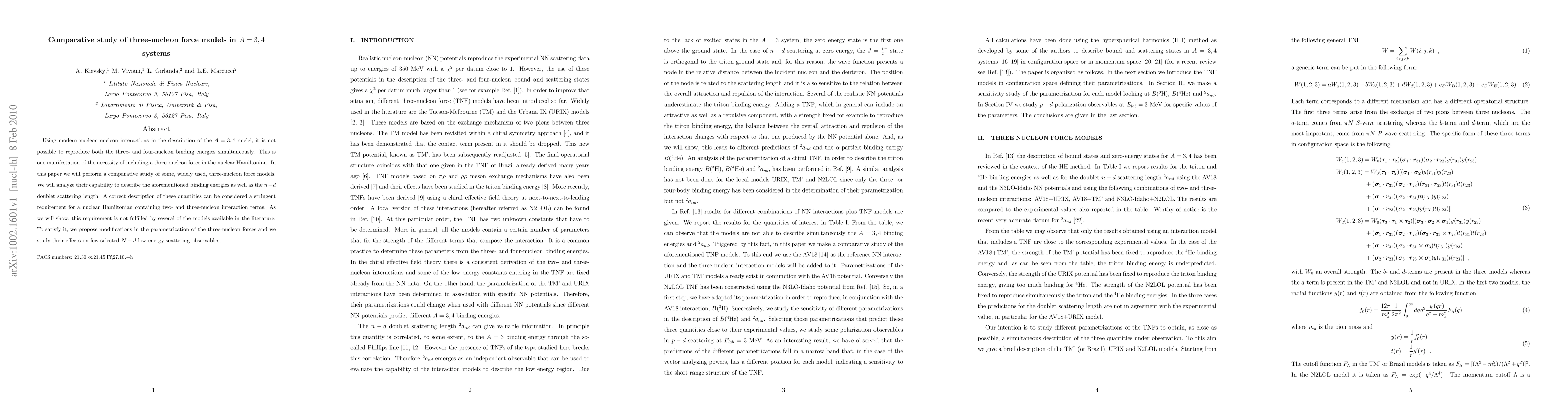 A comparative study of three-nucleon force models is presented to assess their ability to describe binding energies in A=3 and 4 nuclei, with modifications proposed to meet this requirement.