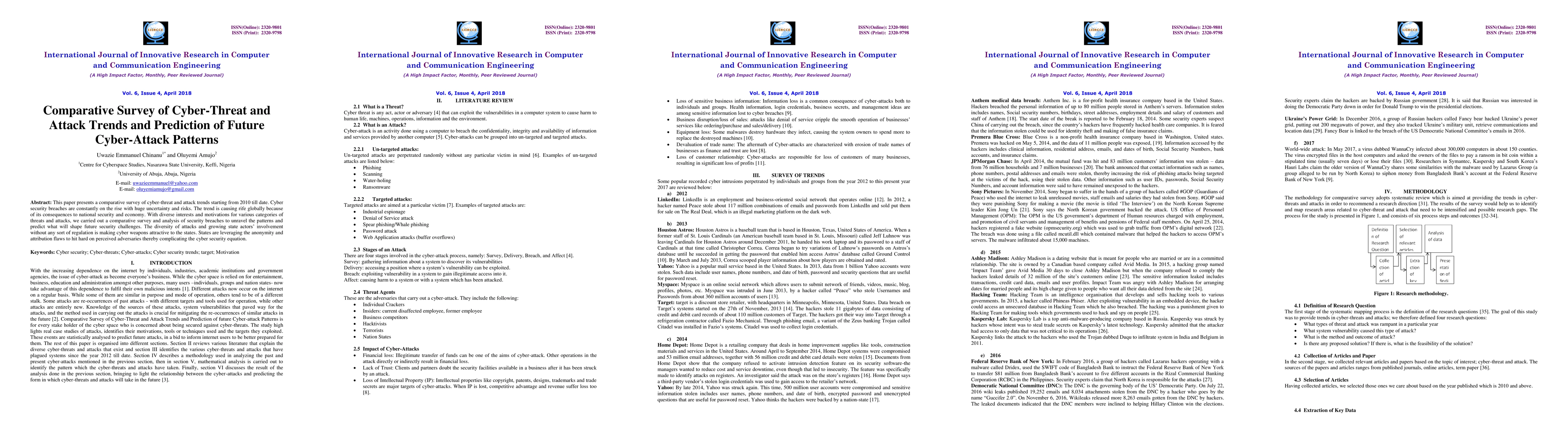 This paper surveys cyber-threat trends from 2010 to present, highlighting rising security breaches impacting national security and economies. It analyzes diverse attack motivations and predicts future cyber-attack patterns, noting state actors' growing involvement and the attractiveness of cyber weapons due to anonymity and attribution flaws.