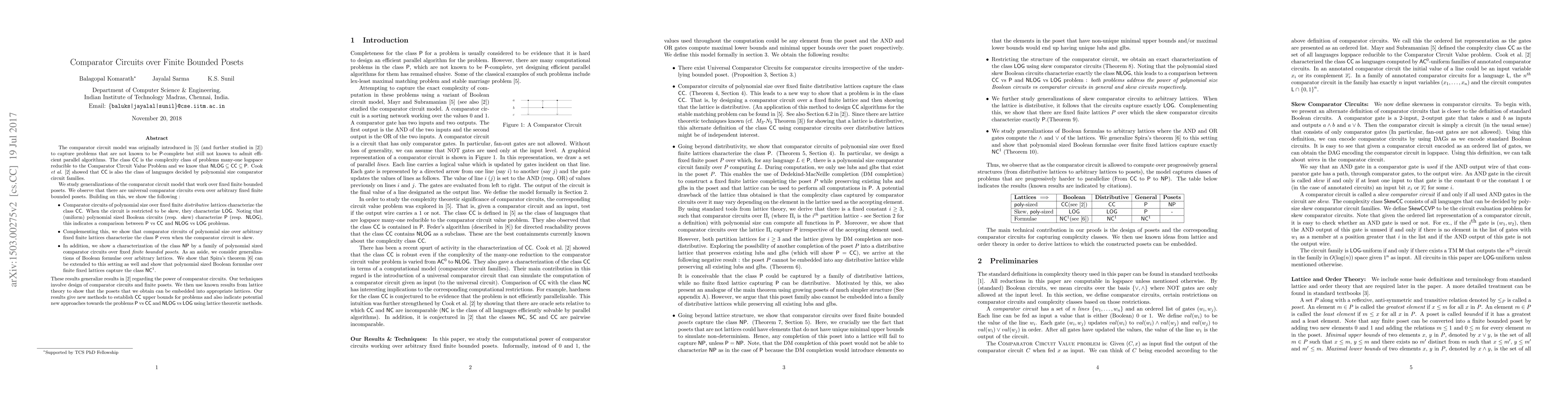 The paper introduces and analyzes comparator circuits over finite bounded posets, establishing their universality and characterizing key complexity classes.