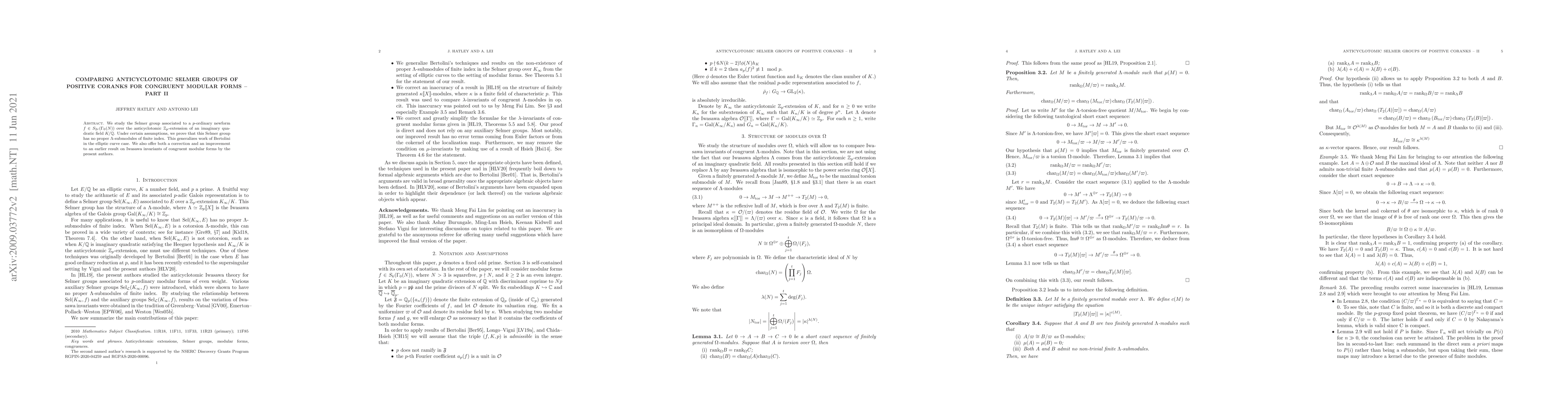 This paper investigates the anticyclotomic Selmer group for $p$-ordinary newforms over an imaginary quadratic field, proving it has no proper $\Lambda$-submodules of finite index under certain conditions. It also corrects and improves earlier results on Iwasawa invariants for congruent modular forms.