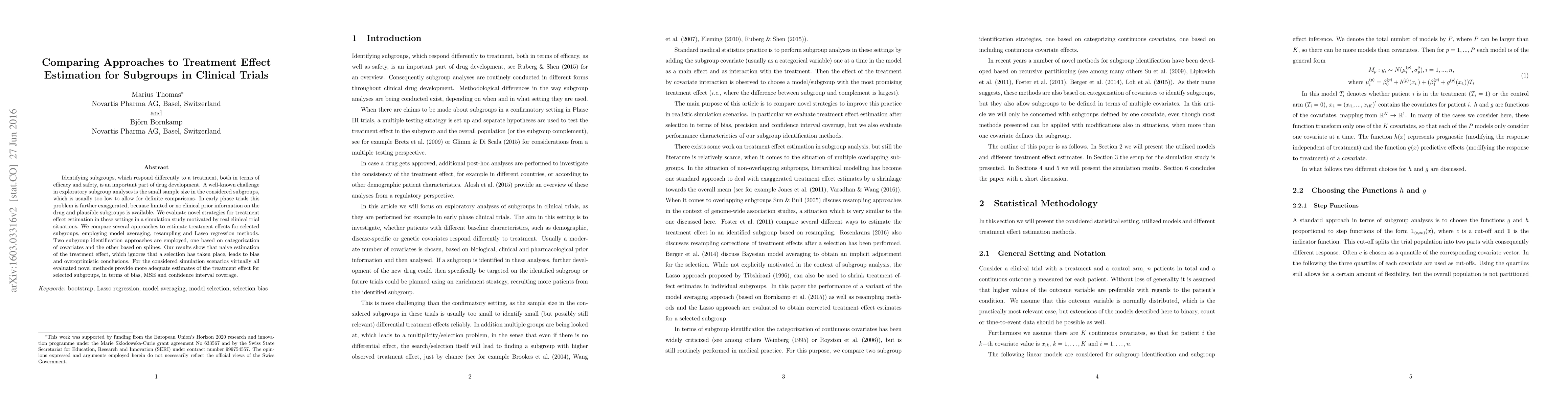 This paper evaluates novel strategies for estimating treatment effects in subgroups within clinical trials, addressing the challenge of small sample sizes. It compares various methods, including model averaging, resampling, and Lasso regression, and finds that most provide more accurate estimates compared to naive approaches, which can lead to bias.