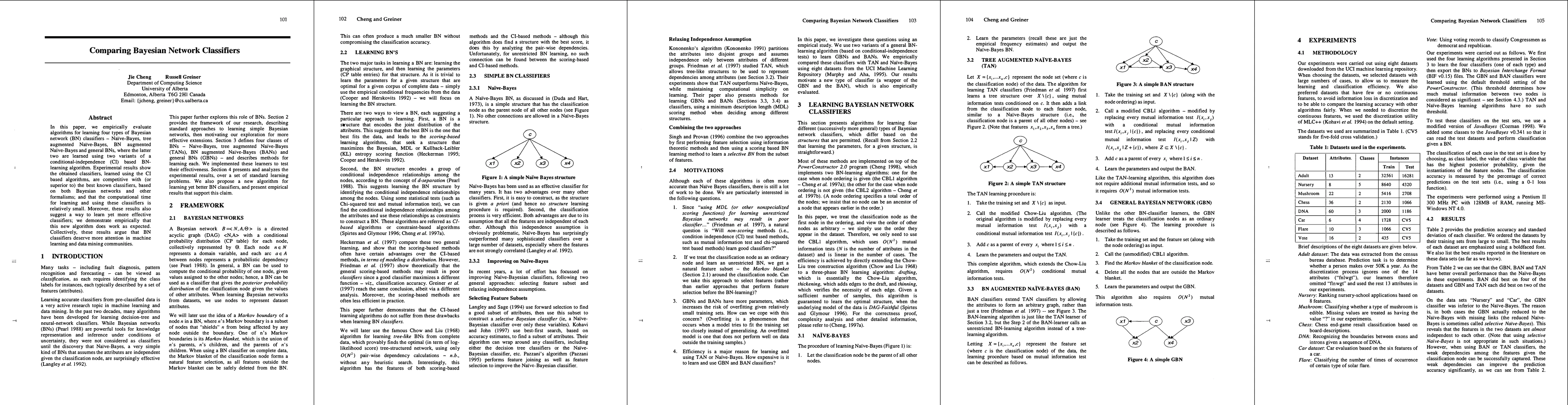 This paper evaluates four types of Bayesian network classifiers, showing that classifiers learned using conditional-independence algorithms are competitive with existing methods, and suggesting a new algorithm for potentially even better performance. The results advocate for increased focus on Bayesian network classifiers in machine learning.