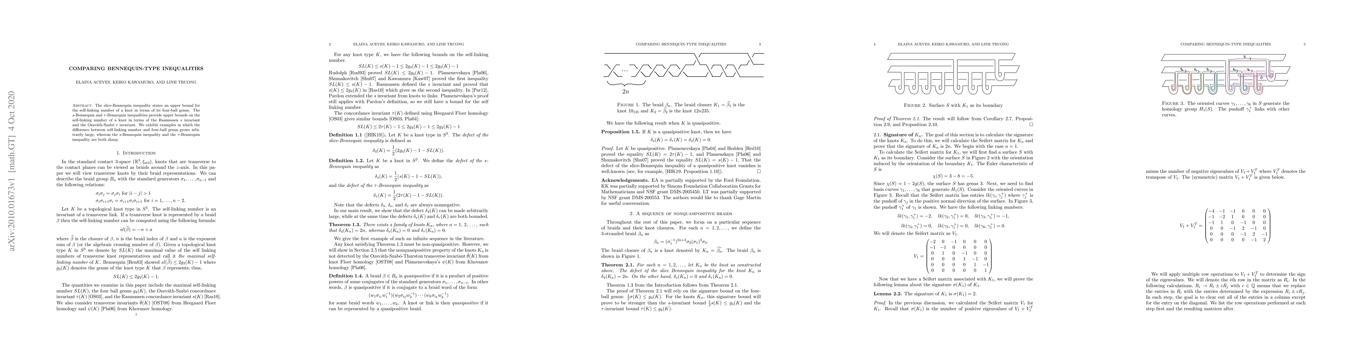 This paper compares Bennequin-type inequalities relating the self-linking number of a knot to its four-ball genus, $s$ invariant, and $\tau$ invariant, demonstrating that while the $s$-Bennequin and $\tau$-Bennequin inequalities are sharp, the difference between the self-linking number and the four-ball genus can grow significantly.
