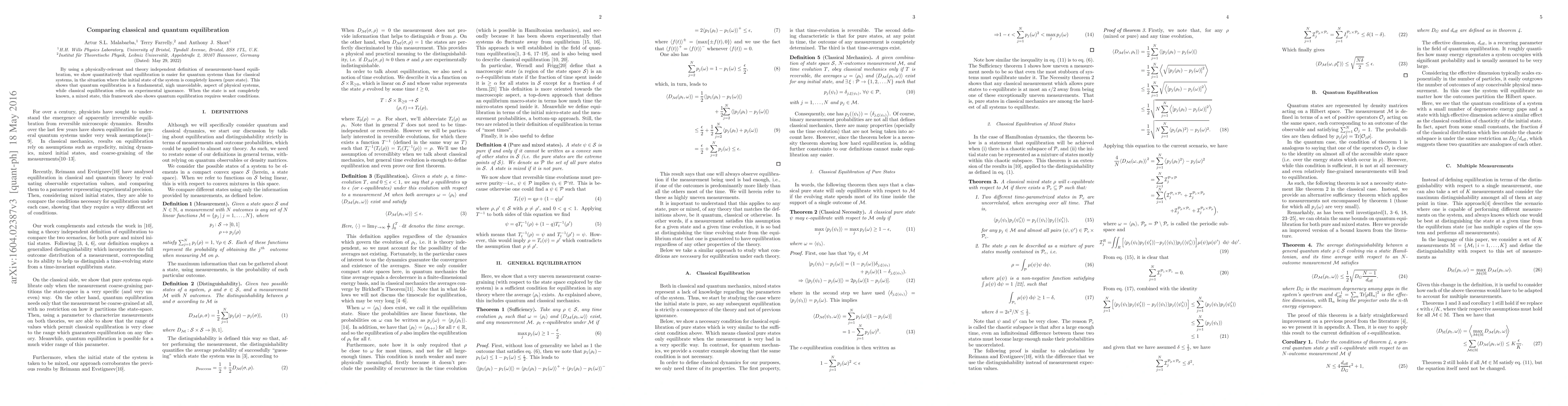 This paper demonstrates that quantum systems equilibrate more easily than classical systems when the initial state is fully known, highlighting quantum equilibration as a fundamental aspect. When the state is mixed, quantum equilibration requires less stringent conditions than classical equilibration.
