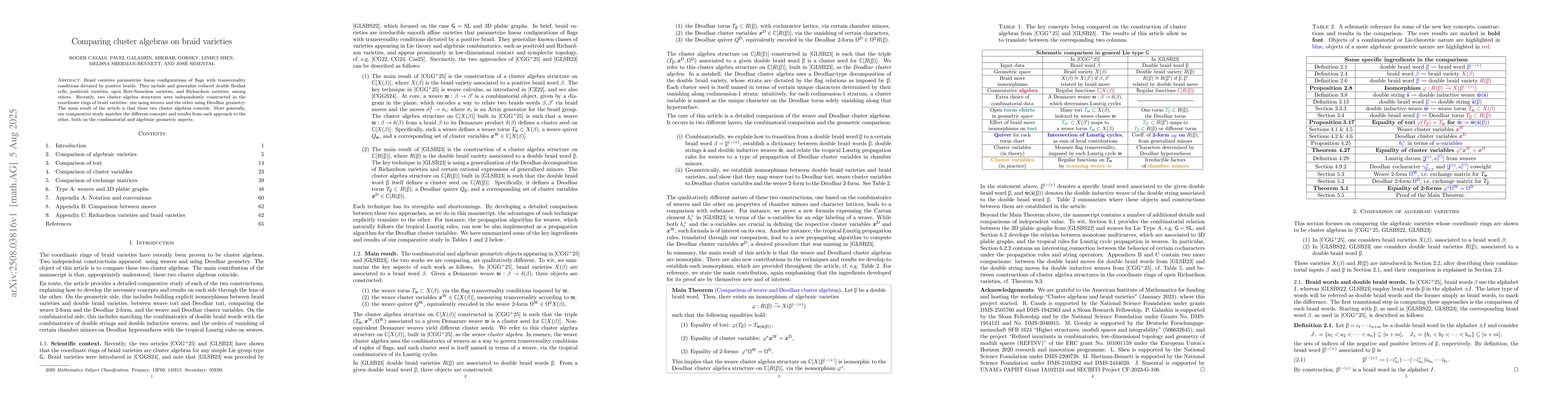Braid varieties parametrize linear configurations of flags with transversality conditions dictated by positive braids. They include and generalize reduced double Bruhat cells, positroid varieties, open Bott-Samelson varieties, and Richardson varieties, among others. Recently, two cluster algebra structures were independently constructed in the coordinate rings of braid varieties: one using weaves and the other using Deodhar geometry. The main result of the article is that these two cluster algebras coincide. More generally, our comparative study matches the different concepts and results from each approach to the other, both on the combinatorial and algebraic geometric aspects.