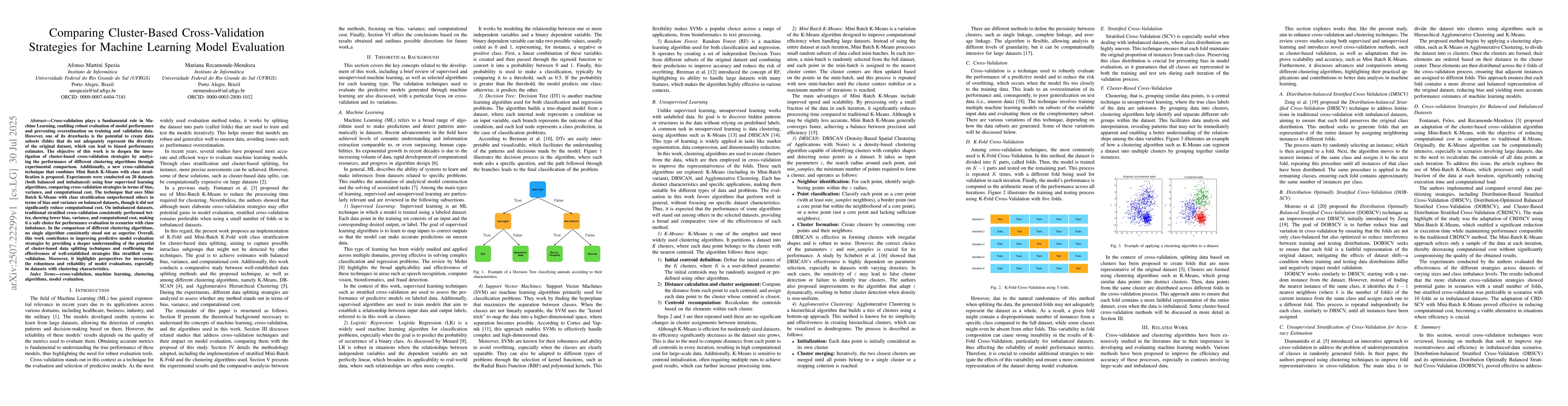 This work stands out by systematically comparing various cluster-based cross-validation strategies, proposing a new technique (SCBCV), and providing empirical evidence on its performance relative to traditional methods, particularly in balanced and imbalanced datasets.