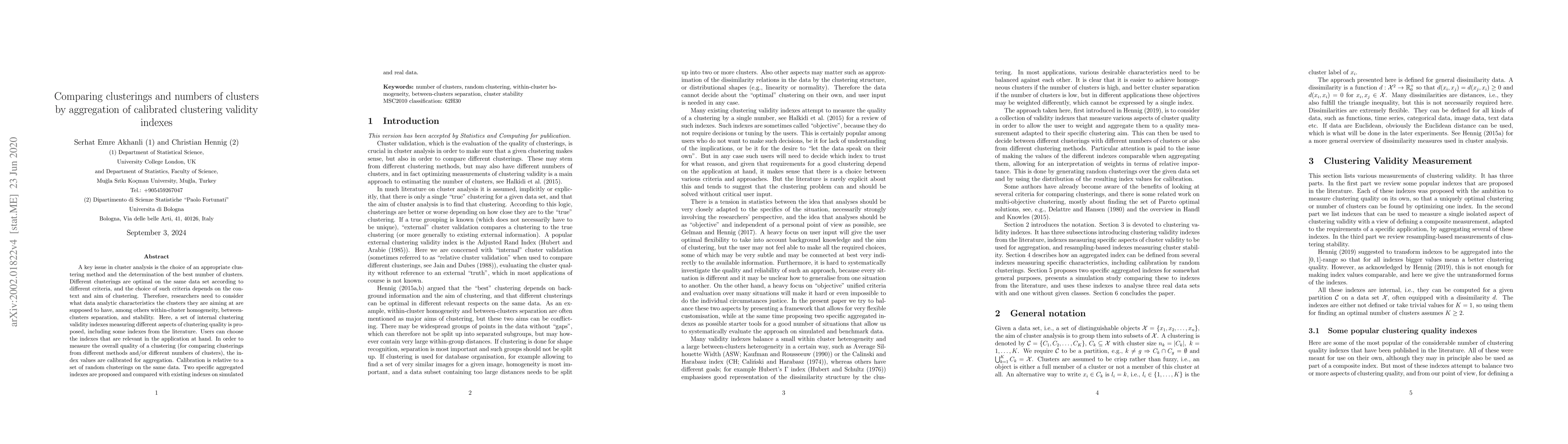 This paper proposes methods for comparing clusterings and determining the optimal number of clusters using calibrated clustering validity indexes. It introduces a set of indexes to measure different aspects of clustering quality and suggests aggregating these calibrated indexes for overall quality measurement, comparing them with existing methods on both simulated and real datasets.