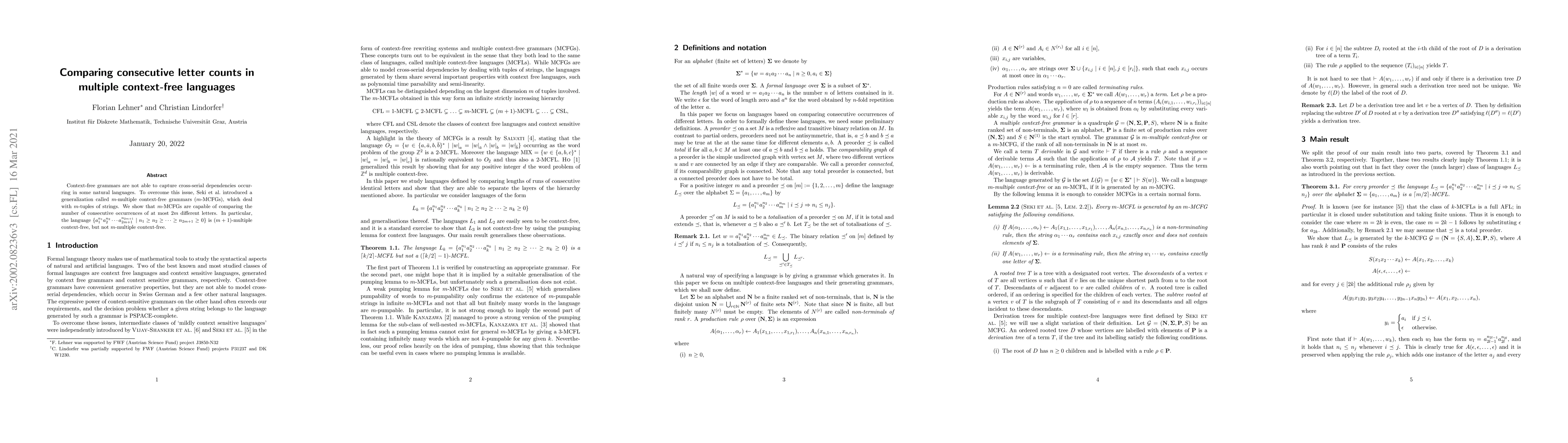 Context-free grammars are not able to model cross-serial dependencies in natural languages. To overcome this issue, Seki et al. introduced a generalization called $m$-multiple context-free grammars ($m$-MCFGs), which deal with $m$-tuples of strings. We show that $m$-MCFGs are capable of comparing the number of consecutive occurrences of at most $2m$ different letters. In particular, the language $\{a_1^{n_1} a_2^{n_2} \dots a_{k}^{n_{2m+1}} \mid n_1 \geq n_2 \geq \dots \geq n_{2m+1} \geq 0\}$ is $(m+1)$-multiple context-free, but not $m$-multiple context-free.