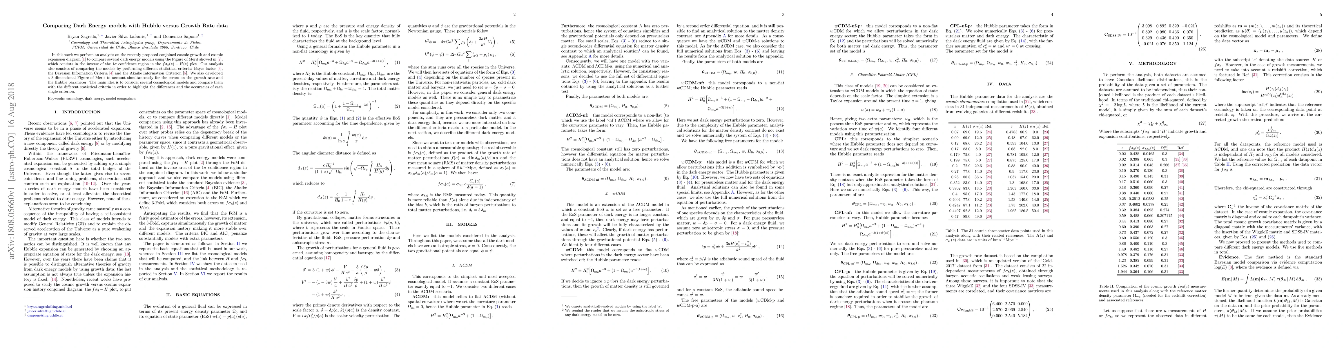 In this work we perform an analysis on the recently proposed conjoined cosmic growth and cosmic expansion diagram [1] to compare several dark energy models using the Figure of Merit showed in [2], which consists in the inverse of the $1\sigma$ confidence region in the $f\sigma_8(z)-H(z)$ plot. Our analysis also consists of comparing the models by performing different statistical criteria: Bayes factor [3], the Bayesian Information Criteria [4] and the Akaike Information Criterion [5]. We also developed a 3-dimensional Figure of Merit to account simultaneously for the errors on the growth rate and the Hubble parameter. The main idea is to consider several cosmological models and compare them with the different statistical criteria in order to highlight the differences and the accuracies of each single criterion.