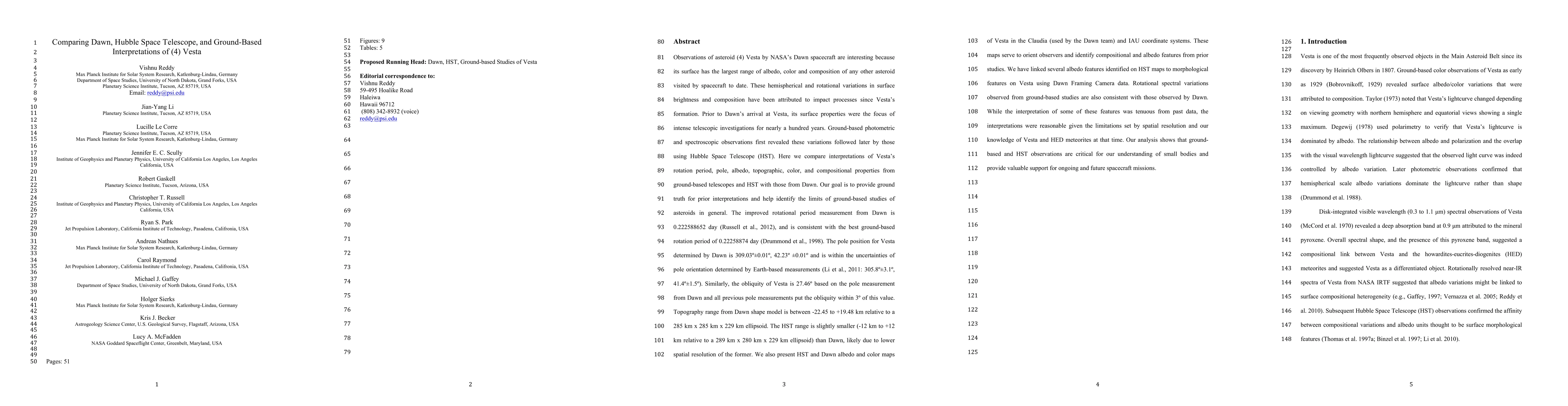 This paper compares interpretations of asteroid 4 Vesta's surface properties from NASA's Dawn spacecraft with those from ground-based telescopes and the Hubble Space Telescope, highlighting the importance of these observations for understanding small bodies. The analysis underscores the critical role of ground-based and HST observations in supporting spacecraft missions.