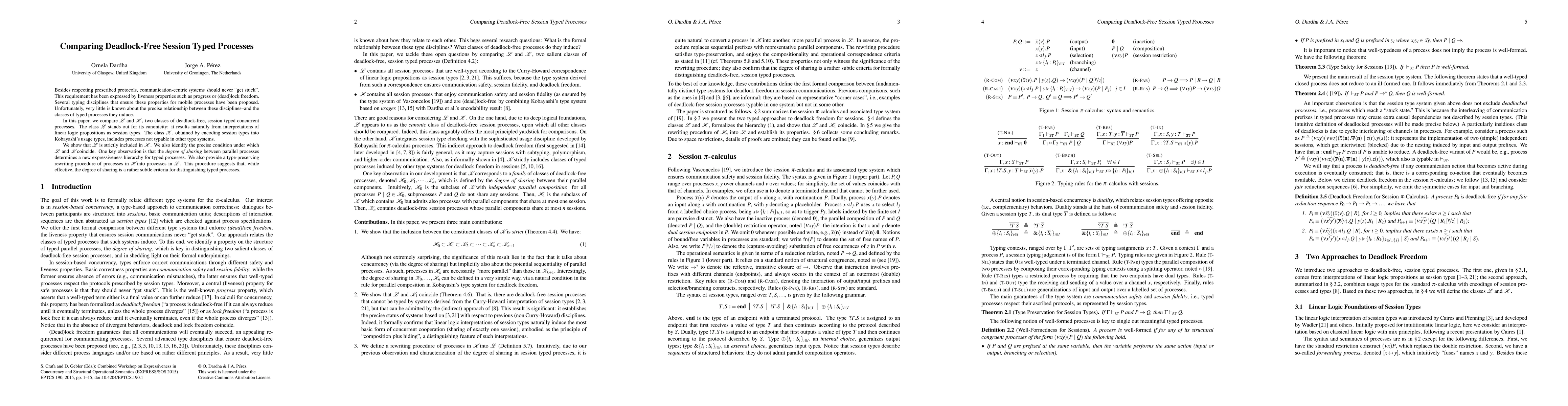 This paper compares two classes of deadlock-free, session typed concurrent processes, L and K, identifying that L is strictly contained within K. It reveals the conditions under which L and K coincide, highlighting that the degree of sharing between parallel processes creates a new hierarchy of expressiveness among typed processes.