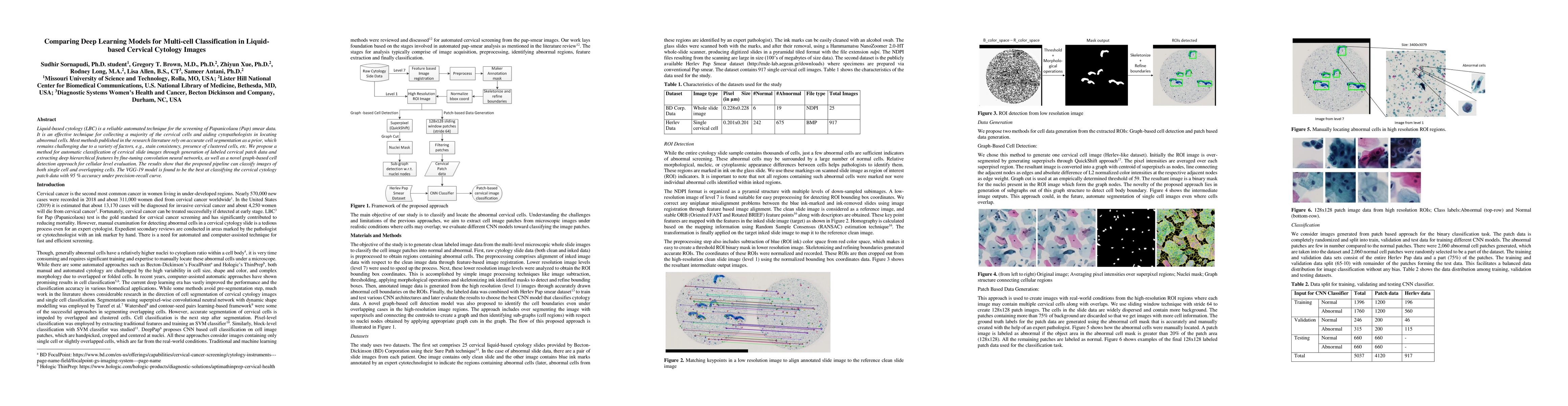 Liquid-based cytology (LBC) is a reliable automated technique for the screening of Papanicolaou (Pap) smear data. It is an effective technique for collecting a majority of the cervical cells and aiding cytopathologists in locating abnormal cells. Most methods published in the research literature rely on accurate cell segmentation as a prior, which remains challenging due to a variety of factors, e.g., stain consistency, presence of clustered cells, etc. We propose a method for automatic classification of cervical slide images through generation of labeled cervical patch data and extracting deep hierarchical features by fine-tuning convolution neural networks, as well as a novel graph-based cell detection approach for cellular level evaluation. The results show that the proposed pipeline can classify images of both single cell and overlapping cells. The VGG-19 model is found to be the best at classifying the cervical cytology patch data with 95 % accuracy under precision-recall curve.