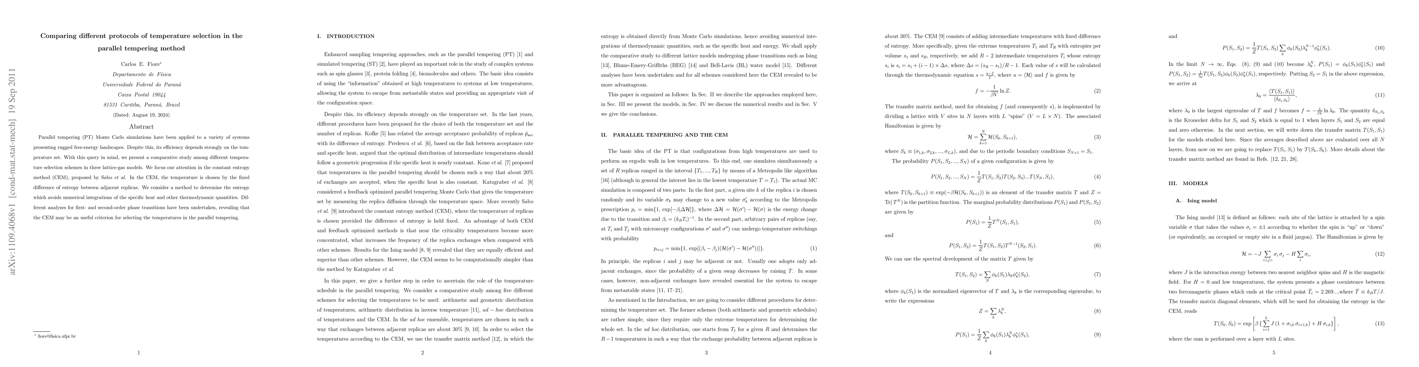 Parallel tempering Monte Carlo simulations have been applied to a variety of systems presenting rugged free-energy landscapes. Despite this, its efficiency depends strongly on the temperature set. With this query in mind, we present a comparative study among different temperature selection schemes in three lattice-gas models. We focus our attention in the constant entropy method (CEM), proposed by Sabo {\it et al}. In the CEM, the temperature is chosen by the fixed difference of entropy between adjacent replicas. We consider a method to determine the entropy which avoids numerical integrations of the specific heat and other thermodynamic quantities. Different analyses for first- and second-order phase transitions have been undertaken, revealing that the CEM may be an useful criterion for selecting the temperatures in the parallel tempering