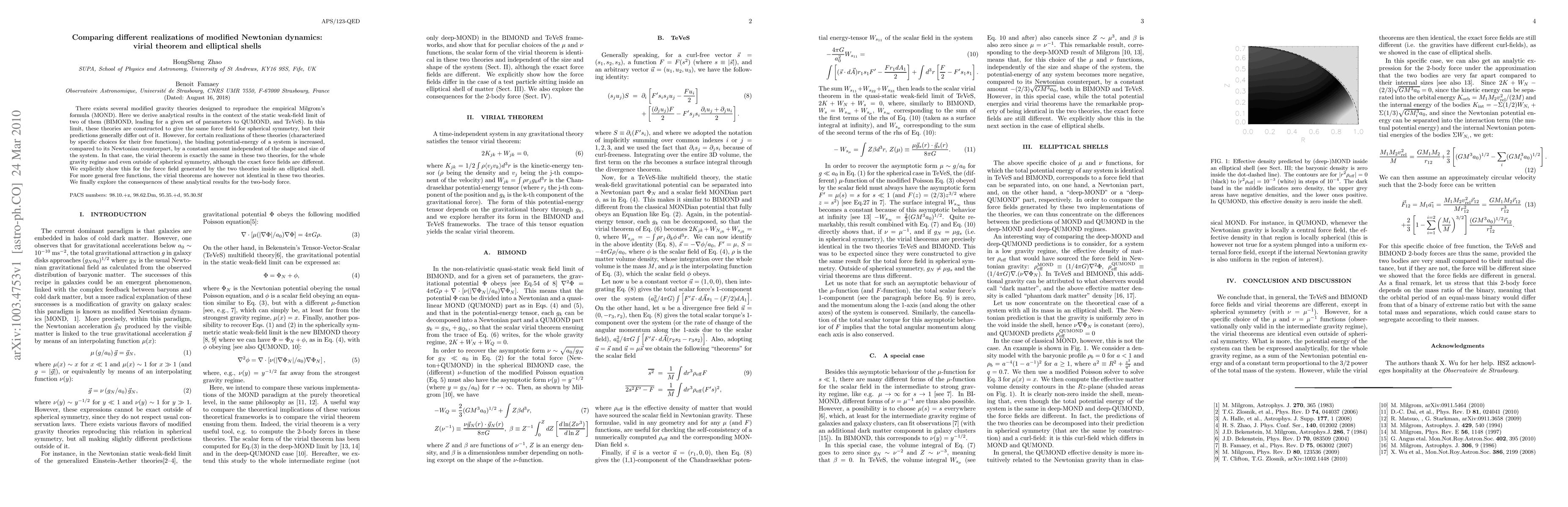 This paper compares modified gravity theories BIMOND and TeVeS, showing that under specific conditions, they yield identical virial theorems despite differing force fields. It demonstrates this equivalence within elliptical shells and discusses the implications for two-body forces.