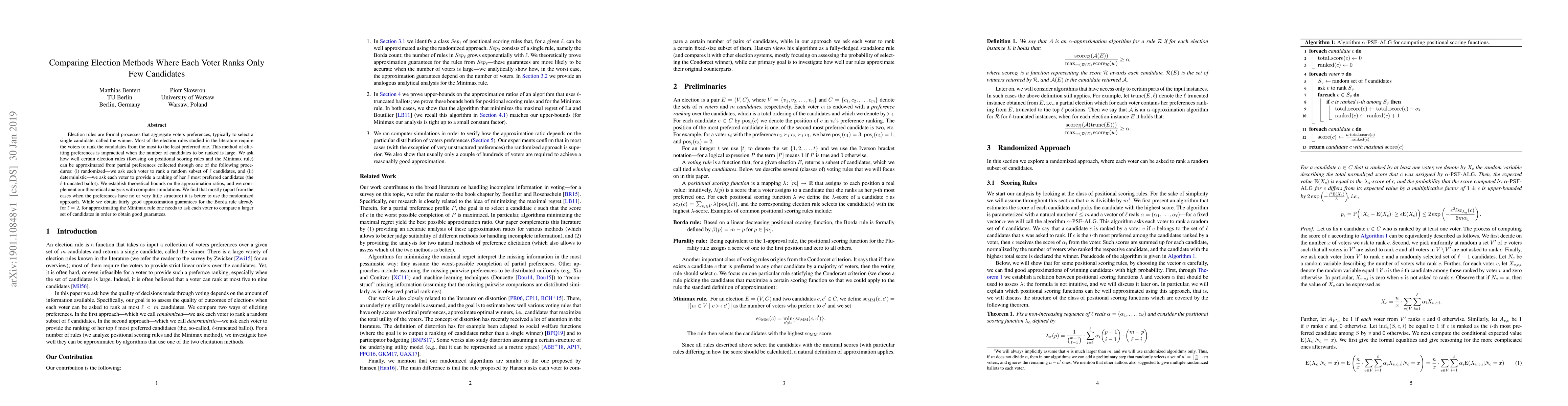 Researchers compared two voting methods that ask voters to rank few candidates, finding that a randomized approach provides better approximation guarantees for most election rules, especially the Minimax rule.