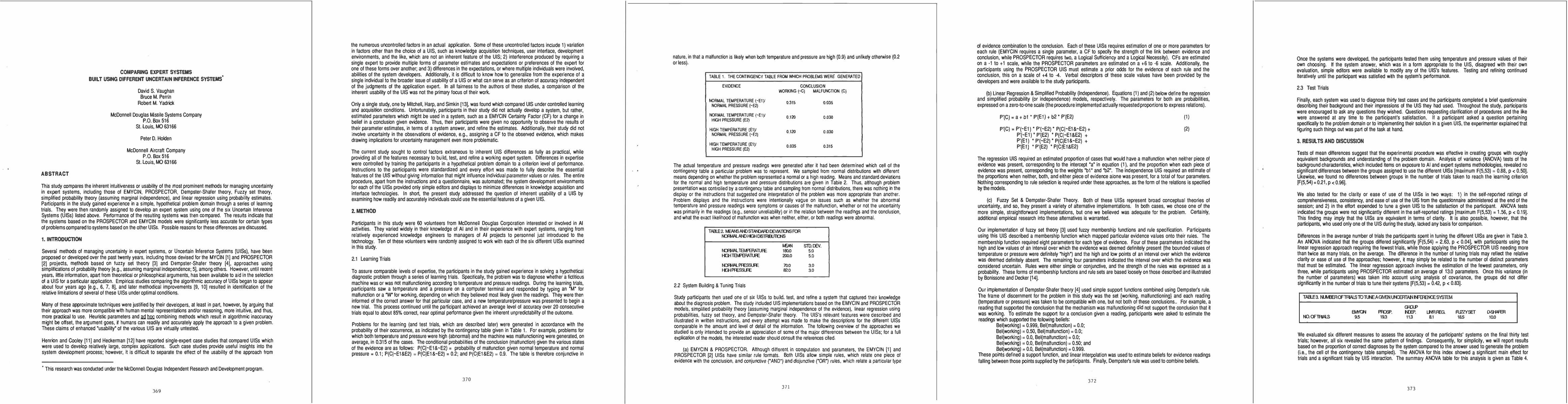 This study compares the inherent intuitiveness or usability of the most prominent methods for managing uncertainty in expert systems, including those of EMYCIN, PROSPECTOR, Dempster-Shafer theory, fuzzy set theory, simplified probability theory (assuming marginal independence), and linear regression using probability estimates. Participants in the study gained experience in a simple, hypothetical problem domain through a series of learning trials. They were then randomly assigned to develop an expert system using one of the six Uncertain Inference Systems (UISs) listed above. Performance of the resulting systems was then compared. The results indicate that the systems based on the PROSPECTOR and EMYCIN models were significantly less accurate for certain types of problems compared to systems based on the other UISs. Possible reasons for these differences are discussed.