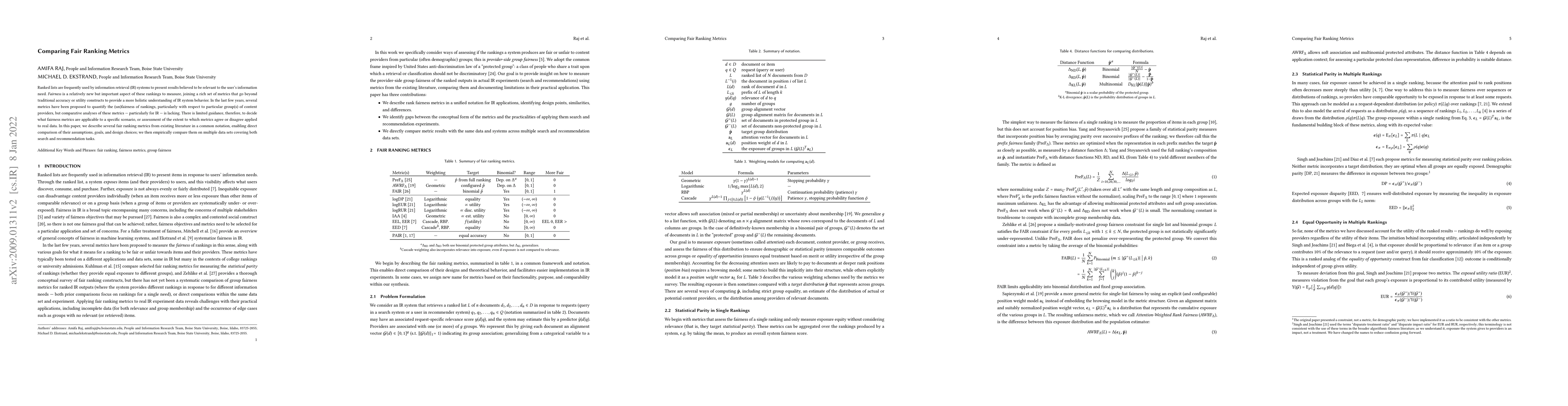 This paper compares various fair ranking metrics for information retrieval systems, providing a common notation to evaluate their assumptions and goals. It empirically assesses the metrics on multiple datasets for search and recommendation tasks to determine the extent of their agreement and applicability.
