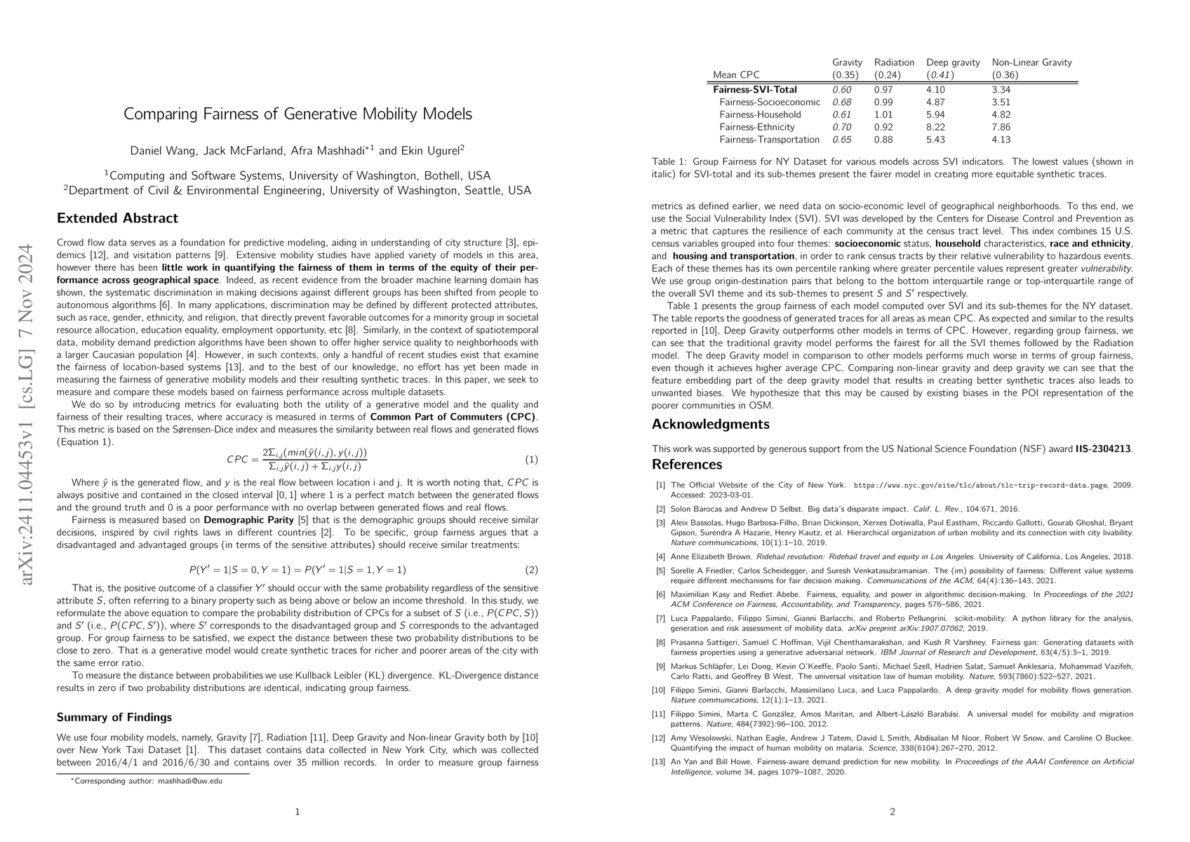 This paper assesses the fairness of generative mobility models by evaluating their utility and equity across geographic regions, revealing that traditional gravity and radiation models are fairer, while the Deep Gravity model, despite higher accuracy, amplifies existing biases. It underscores the need for incorporating fairness metrics in urban mobility modeling.