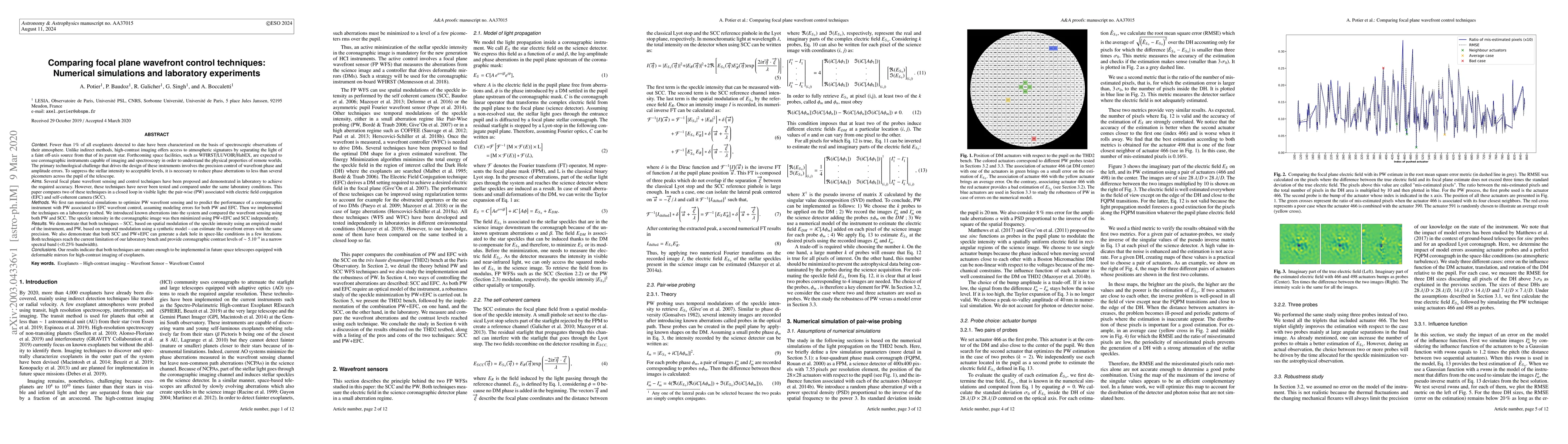 Two wavefront control techniques were compared in a laboratory setting: electric field conjugation (EFC) and self-coherent camera (SCC). Both methods successfully generated dark holes in images, achieving contrast levels of 5e-9, comparable to the current laboratory limitation.