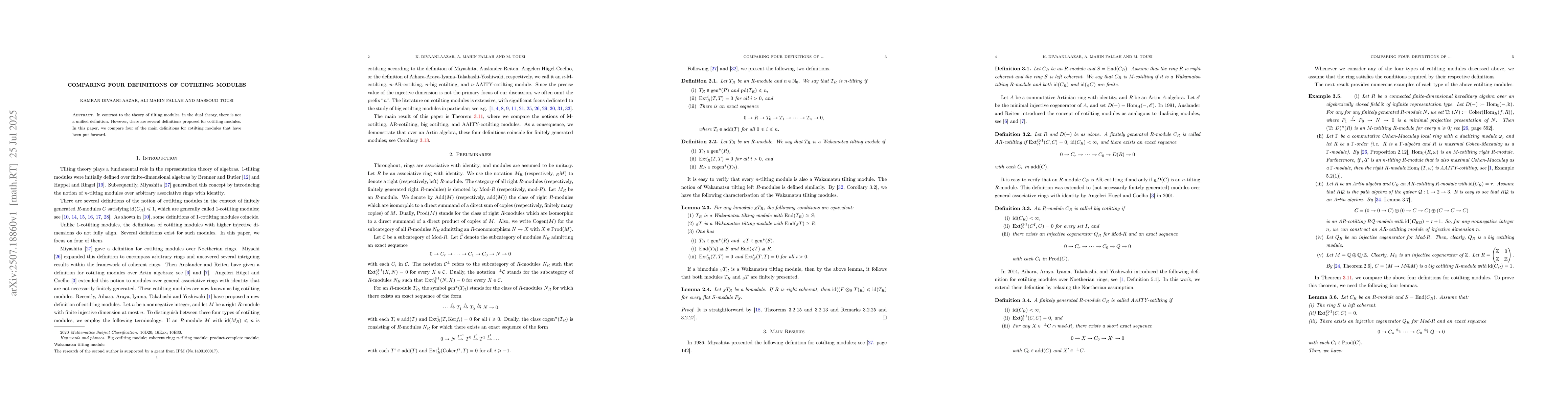 In contrast to the theory of tilting modules, in the dual theory, there is not a unified definition. However, there are several definitions proposed for cotilting modules. In this paper, we compare four of the main definitions for cotilting modules that have been put forward.
