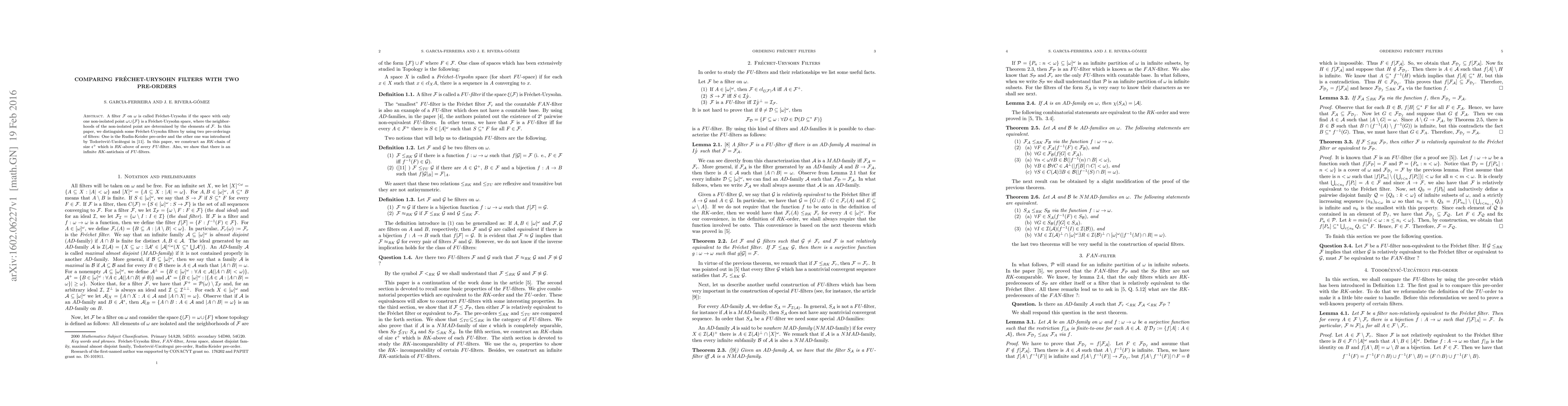 This paper distinguishes Fr\'echet-Urysohn filters using two pre-orders: Rudin-Keisler and Todor\v{c}evi\'c-Uzc\'ategui's. It constructs an $RK$-chain of size $\c^+$ above any Fr\'echet-Urysohn filter and demonstrates an infinite $RK$-antichain of such filters.
