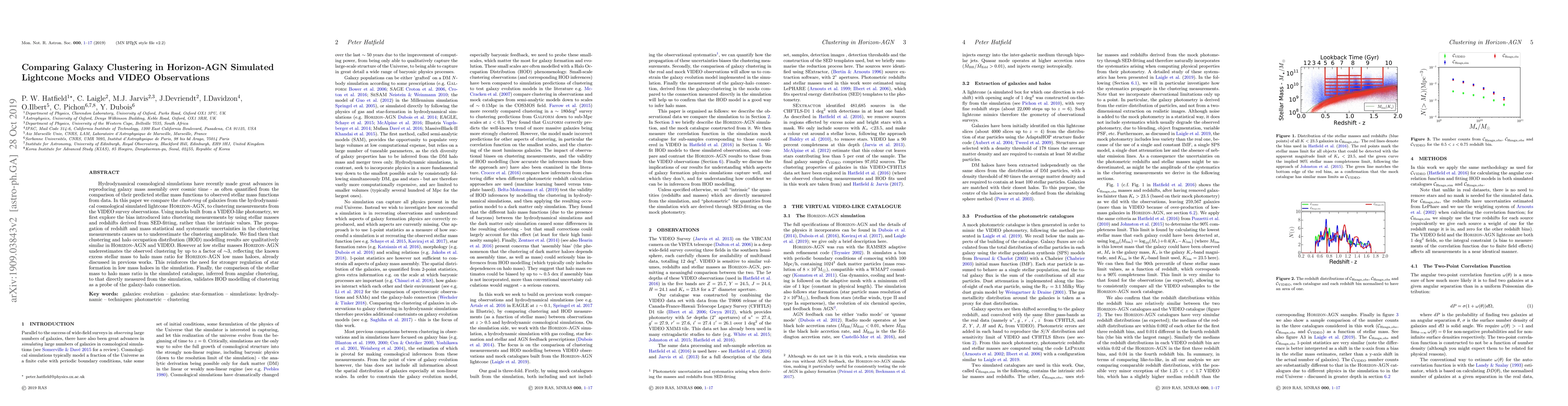 This paper compares the galaxy clustering from the simulated Horizon-AGN lightcone with observations from the VIDEO survey, finding qualitative agreement but a significant underestimation of clustering in low-mass galaxies by Horizon-AGN, highlighting the need for improved star formation regulation in low-mass haloes. The study also validates HOD modelling for probing the galaxy-halo connection.