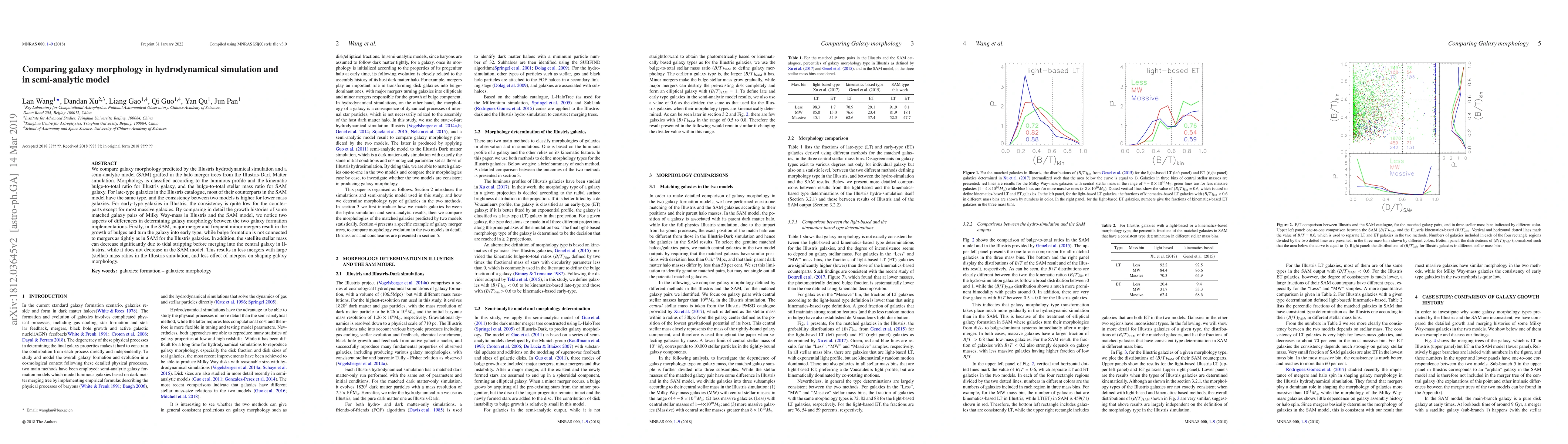 This paper compares galaxy morphology from the Illustris hydrodynamical simulation and a semi-analytic model (SAM), finding higher consistency for lower mass late-type galaxies. Differences in merger-driven bulge formation and tidal stripping effects lead to less morphological transformation in Illustris compared to SAM.