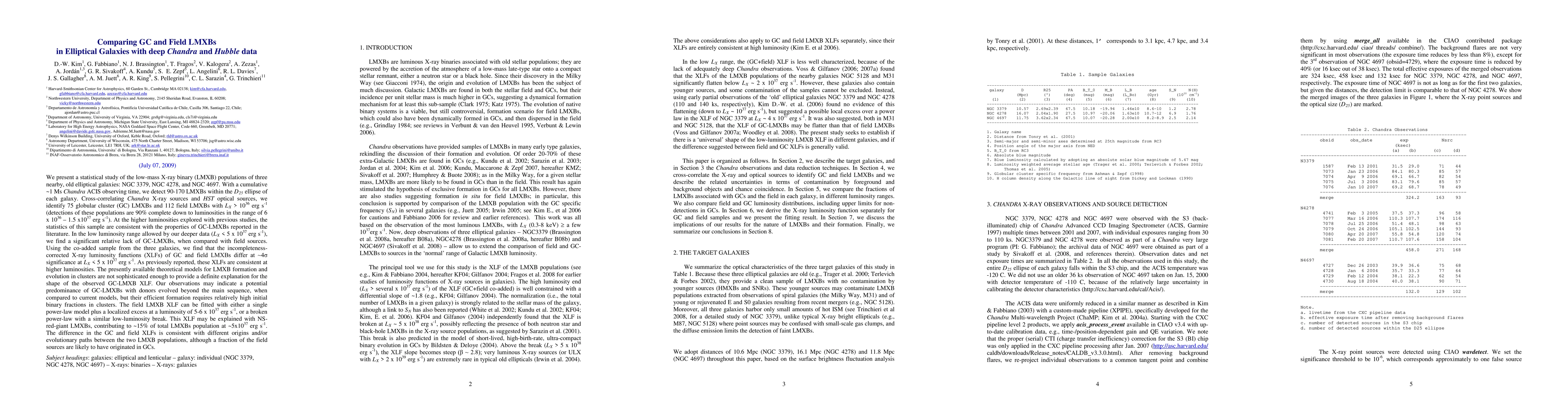 (abridged) We present a statistical study of the low-mass X-ray binary (LMXB) populations of three nearby, old elliptical galaxies: NGC 3379, NGC 4278, and NGC 4697. With a cumulative ~1 Ms Chandra ACIS observing time, we detect 90-170 LMXBs within the D25 ellipse of each galaxy. Cross-correlating Chandra X-ray sources and HST optical sources, we identify 75 globular cluster (GC) LMXBs and 112 field LMXBs. In the low luminosity range allowed by our deeper data (LX < 5 x 1037 erg s-1), we find a significant relative lack of GC-LMXBs, when compared with field sources. Using the co-added sample from the three galaxies, we find that the incompleteness-corrected X-ray luminosity functions (XLFs) of GC and field LMXBs differ at ~4# significance at LX < 5 x 1037 erg s-1. As previously reported, these XLFs are consistent at higher luminosities. Our observations may indicate a potential predominance of GC-LMXBs with donors evolved beyond the main sequence, when compared to current models, but their efficient formation requires relatively high initial binary fractions in clusters. The field LMXB XLF can be fitted with either a single power-law model plus a localized excess at a luminosity of 5-6 x 1037 erg s-1, or a broken power-law with a similar low-luminosity break. This XLF may be explained with NS-red-giant LMXBs, contributing to ~15% of total LMXBs population at ~5x1037 erg s-1. The difference in the GC and field XLFs is consistent with different origins and/or evolutionary paths between the two LMXB populations, although a fraction of the field sources are likely to have originated in GCs.