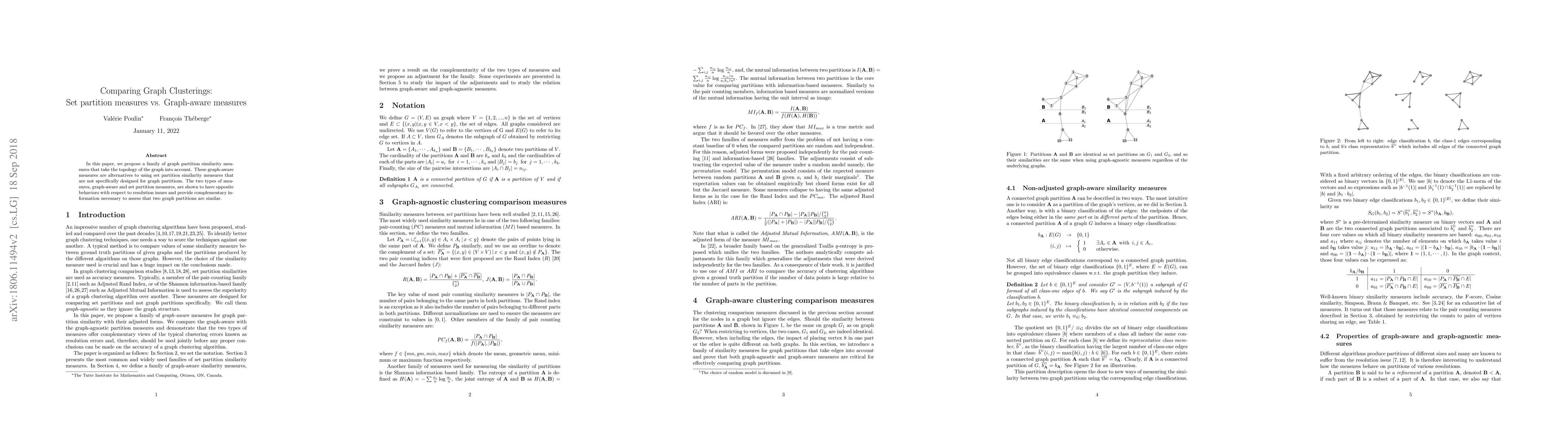 Researchers compare graph partition similarity measures that consider a graph's topology to traditional set partition measures, highlighting complementary information for assessing similar partitions.