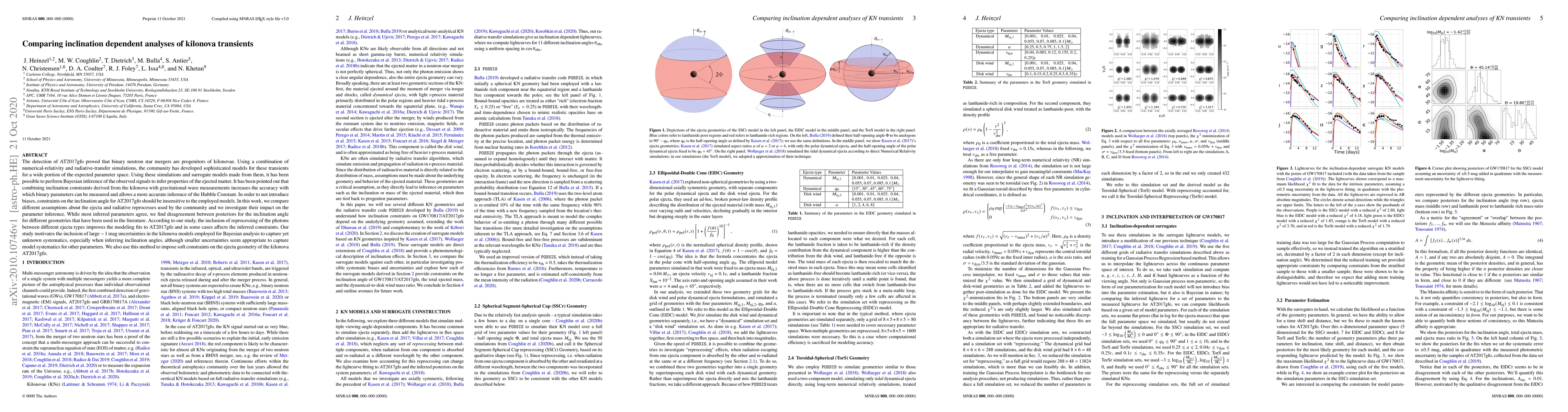 This paper compares various inclination-dependent models used in kilonova analyses to determine the impact on inferred parameters, especially the inclination angle. It finds that while most parameters agree, different geometries lead to disagreements in inclination estimates, suggesting the need for large uncertainties in models to account for systematics, particularly for inclination.