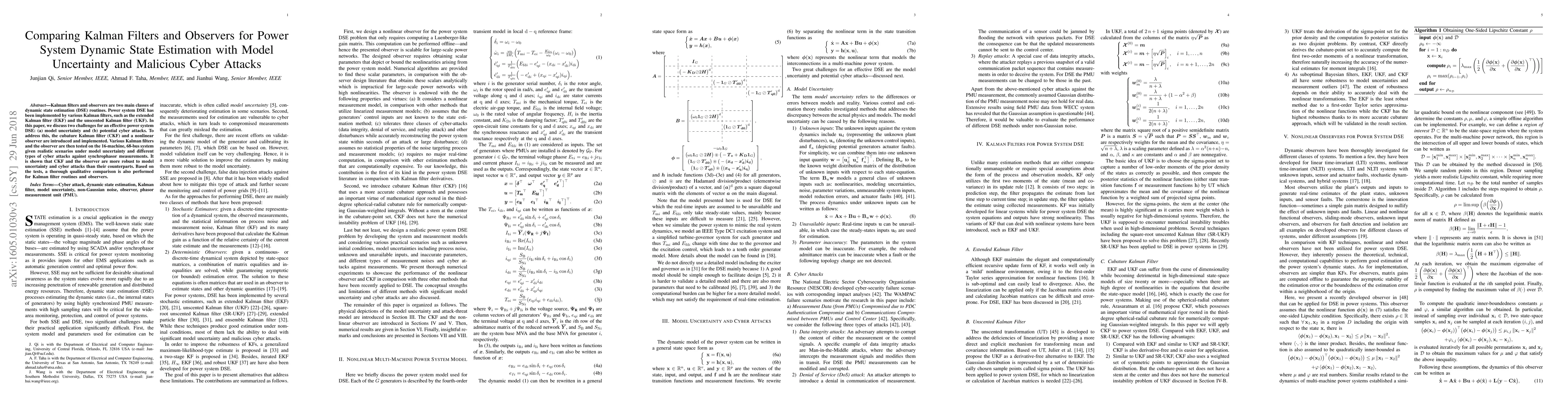 This paper compares Kalman filters and observers for power system dynamic state estimation under model uncertainty and cyber attacks. The cubature Kalman filter and a nonlinear observer show greater robustness compared to extended and unscented Kalman filters, highlighting their effectiveness in handling these challenges.