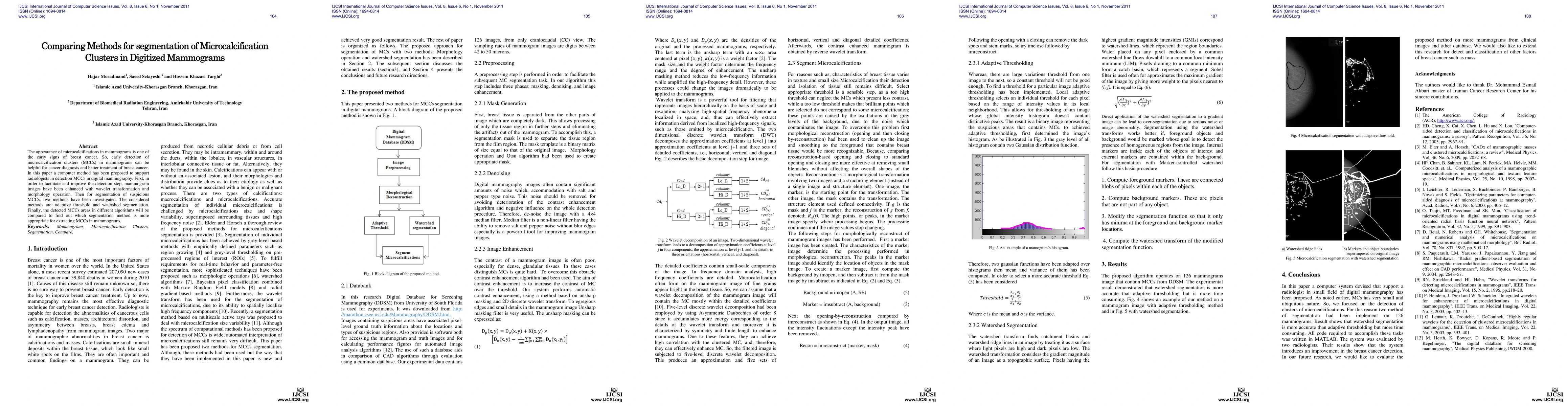 This paper proposes a computer method to aid radiologists in detecting microcalcification clusters (MCCs) in mammograms, enhancing images with wavelet transformation and morphology, and comparing adaptive threshold and watershed segmentation methods for MCC segmentation. The goal is to identify the most effective segmentation technique for early breast cancer diagnosis.