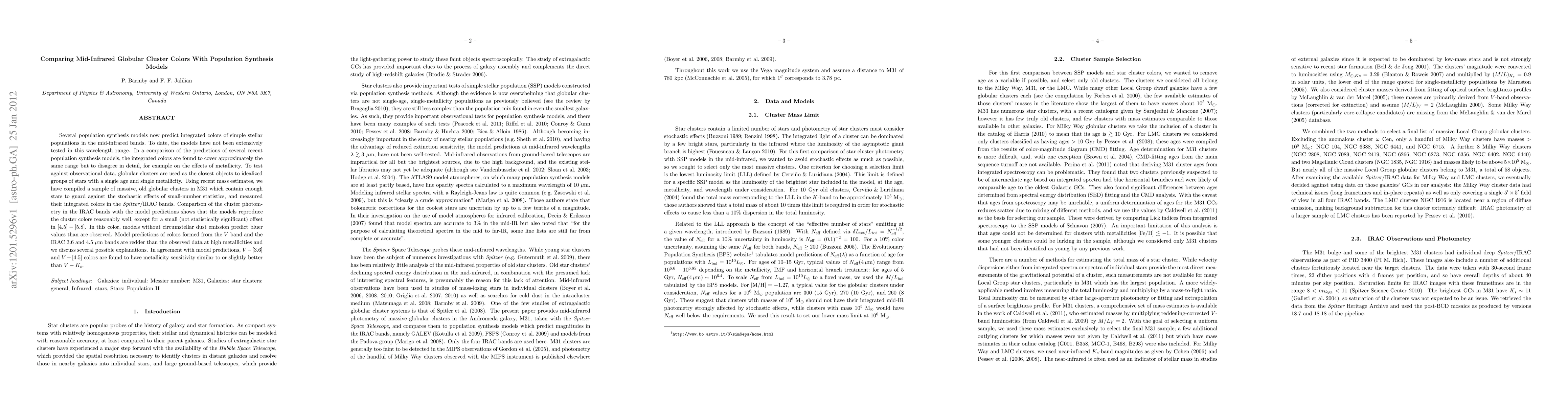 This paper compares mid-infrared globular cluster colors with predictions from several population synthesis models, finding that while models cover the same range of integrated colors, they differ in detail, particularly regarding metallicity effects. The study concludes that models generally reproduce observed cluster colors well, except for minor discrepancies in certain color bands, suggesting possible influences from circumstellar dust emission.