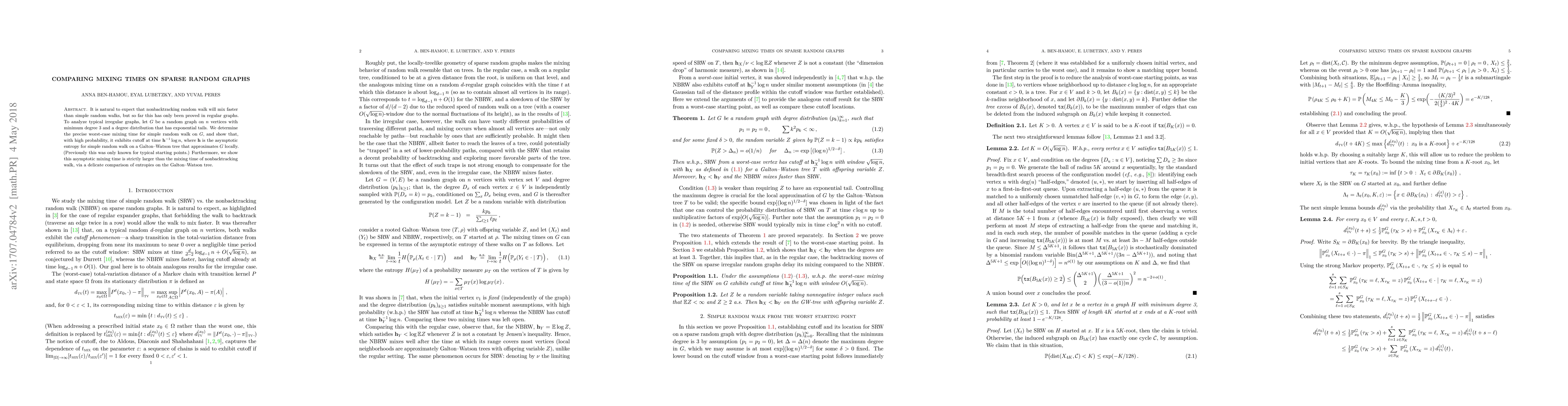 This paper compares the mixing times of simple and nonbacktracking random walks on sparse random graphs with exponential tail degree distributions. It establishes that the simple random walk exhibits cutoff mixing at a time scale of $\mathbf{h}^{-1} \log n$, where $\mathbf{h}$ is the asymptotic entropy for simple random walk on a Galton-Watson tree approximating the graph locally, and shows this mixing time is strictly larger than that of the nonbacktracking walk.