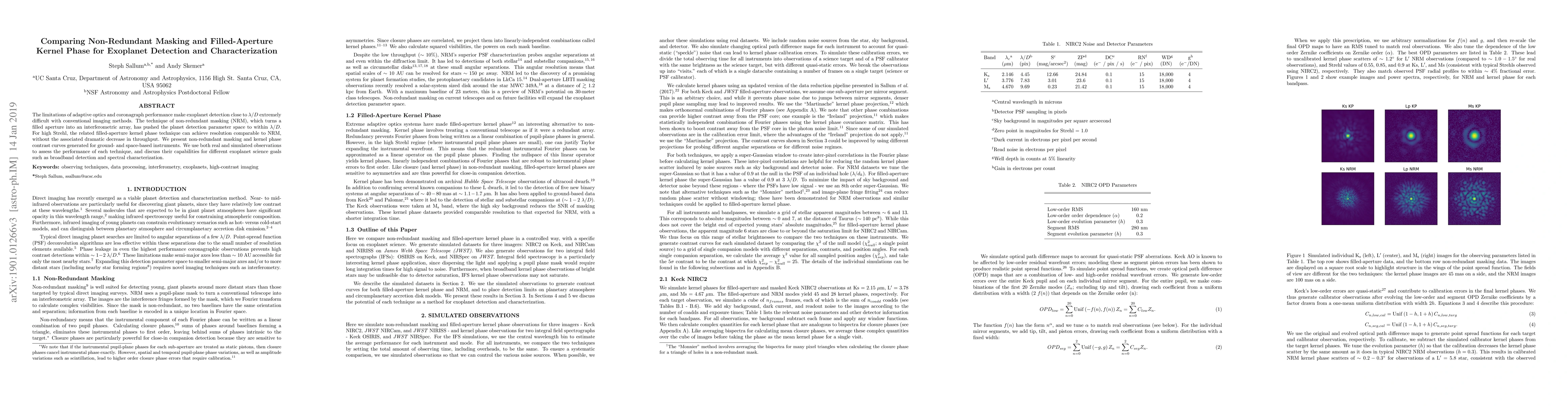 This paper compares non-redundant masking (NRM) and filled-aperture kernel phase techniques for exoplanet detection and characterization, showing that NRM achieves high resolution near the diffraction limit while kernel phase maintains higher throughput. Both techniques are evaluated for their effectiveness in various exoplanet science goals.