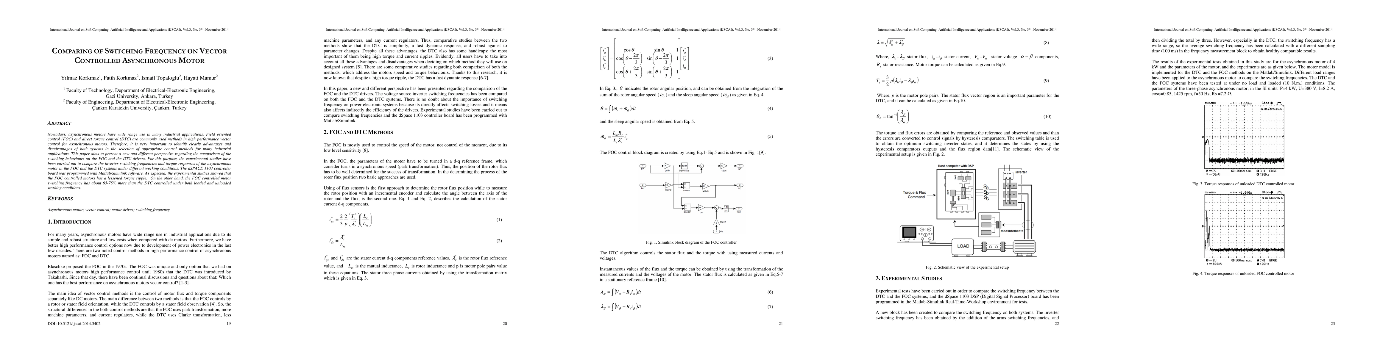 This paper compares the switching frequency behaviors of field oriented control (FOC) and direct torque control (DTC) in vector control of asynchronous motors, using experimental studies. The results show that while FOC has reduced torque ripple, its switching frequency is 65-75% higher than DTC under various conditions.