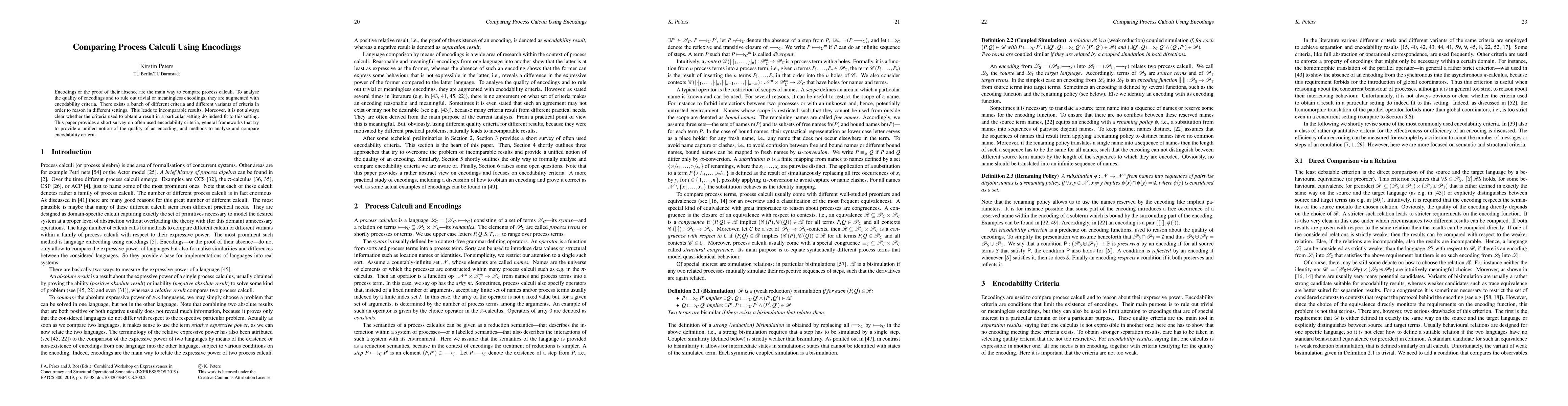This paper surveys various encodability criteria used to compare process calculi, highlighting the lack of a unified framework for assessing encoding quality and discussing methods to analyze and compare these criteria. It aims to clarify the applicability of different criteria in diverse settings.