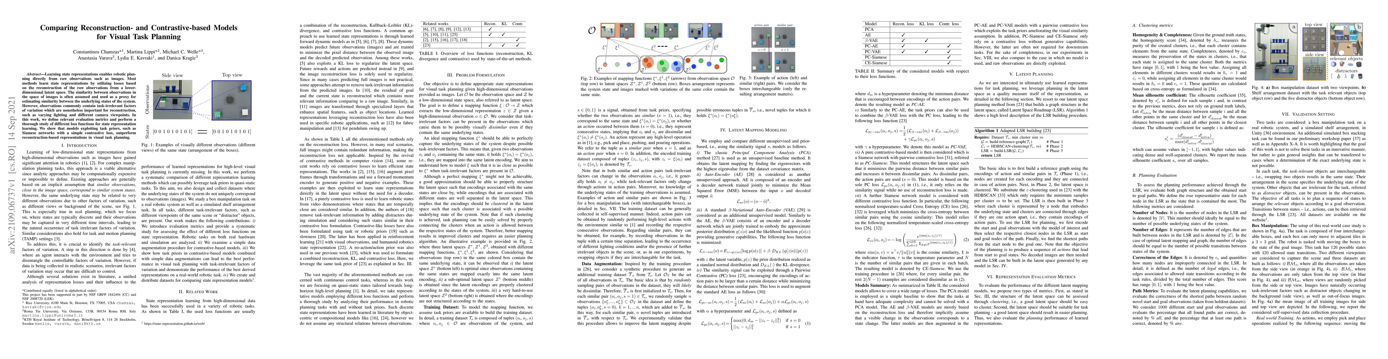 Researchers compared reconstruction-based and contrastive-based models for visual task planning in robotics, finding that models using task priors outperform those relying on observation similarity.