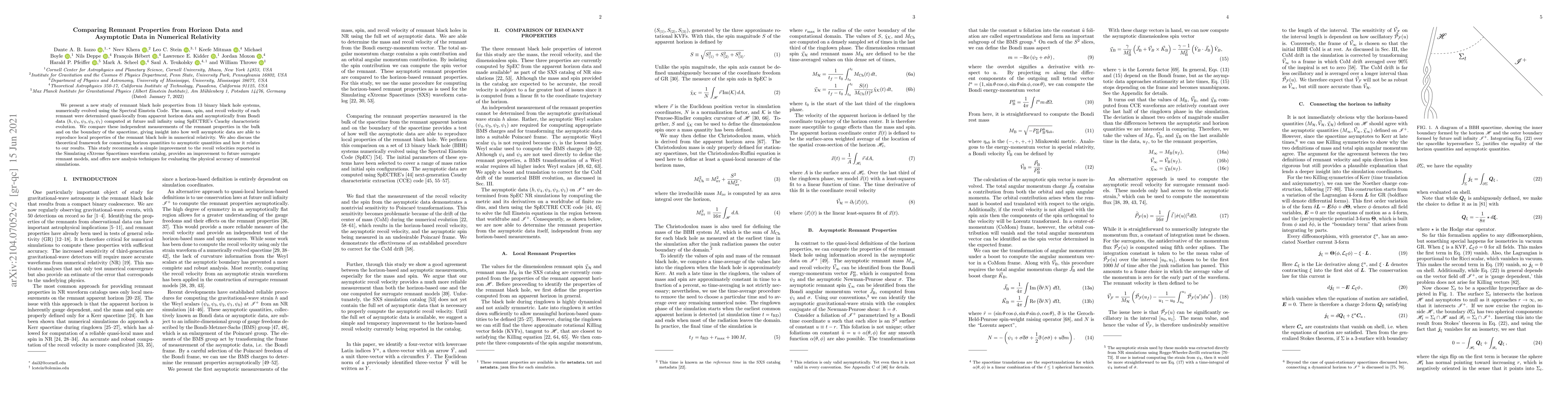 This study compares remnant black hole properties from 13 binary black hole systems, determined quasi-locally from horizon data and asymptotically from future null infinity data, to assess the accuracy of asymptotic data in reproducing local remnant properties. The findings suggest improvements to recoil velocity reports and surrogate remnant models.