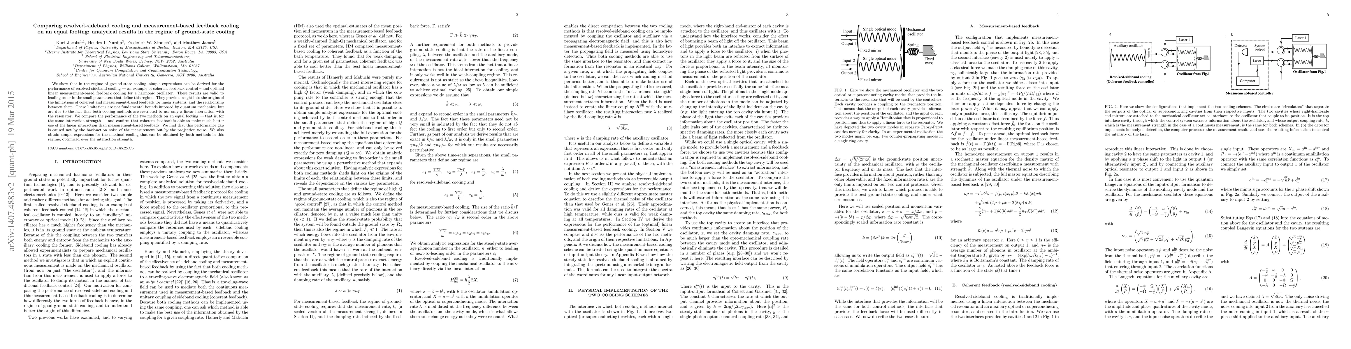 This paper compares resolved-sideband cooling and measurement-based feedback cooling for a harmonic oscillator, showing that coherent feedback achieves superior performance due to better utilization of linear interactions, rather than back-action noise, and provides analytical expressions for their optimal cooling limits.