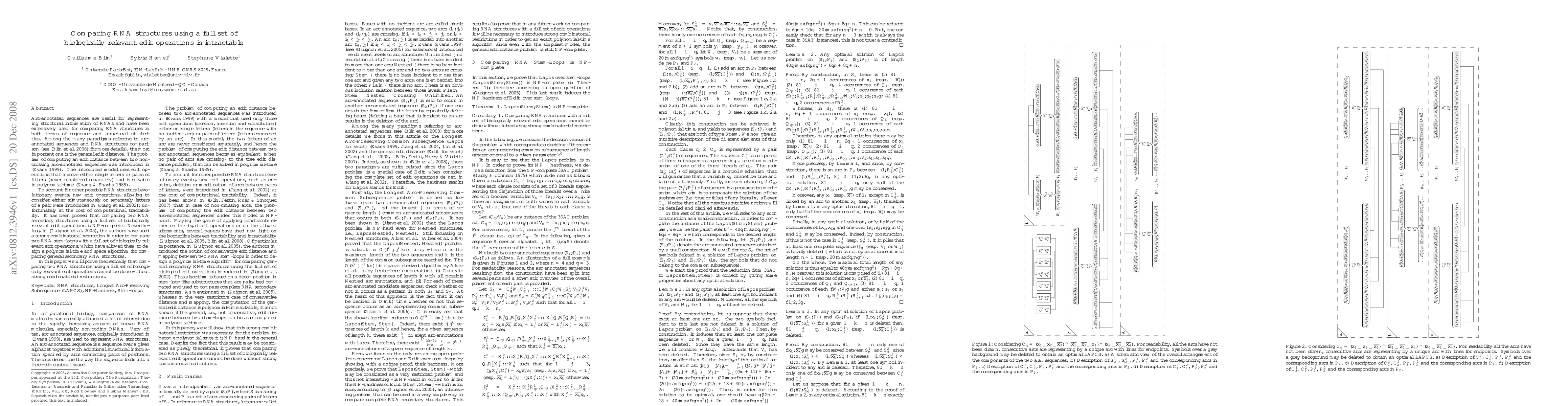 Arc-annotated sequences are useful for representing structural information of RNAs and have been extensively used for comparing RNA structures in both terms of sequence and structural similarities. Among the many paradigms referring to arc-annotated sequences and RNA structures comparison (see \cite{IGMA_BliDenDul08} for more details), the most important one is the general edit distance. The problem of computing an edit distance between two non-crossing arc-annotated sequences was introduced in \cite{Evans99}. The introduced model uses edit operations that involve either single letters or pairs of letters (never considered separately) and is solvable in polynomial-time \cite{ZhangShasha:1989}. To account for other possible RNA structural evolutionary events, new edit operations, allowing to consider either silmutaneously or separately letters of a pair were introduced in \cite{jiangli}; unfortunately at the cost of computational tractability. It has been proved that comparing two RNA secondary structures using a full set of biologically relevant edit operations is {\sf\bf NP}-complete. Nevertheless, in \cite{DBLP:conf/spire/GuignonCH05}, the authors have used a strong combinatorial restriction in order to compare two RNA stem-loops with a full set of biologically relevant edit operations; which have allowed them to design a polynomial-time and space algorithm for comparing general secondary RNA structures. In this paper we will prove theoretically that comparing two RNA structures using a full set of biologically relevant edit operations cannot be done without strong combinatorial restrictions.