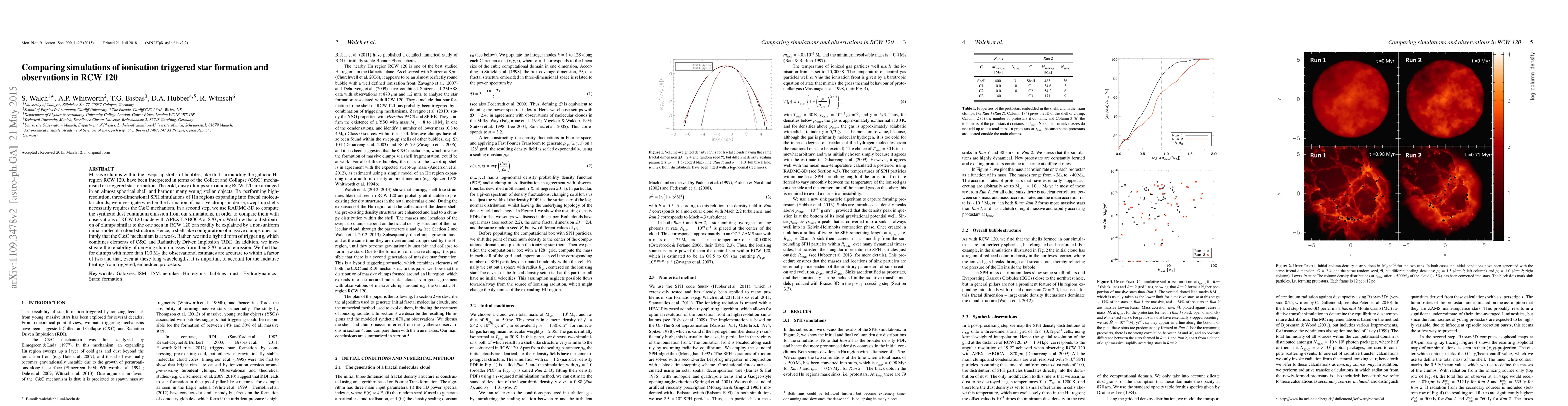 Massive clumps within the swept-up shells of bubbles, like that surrounding the galactic HII region RCW 120, have been interpreted in terms of the Collect and Collapse (C&C) mechanism for triggered star formation. The cold, dusty clumps surrounding RCW 120 are arranged in an almost spherical shell and harbour many young stellar objects. By performing high-resolution, three-dimensional SPH simulations of HII regions expanding into fractal molecular clouds, we investigate whether the formation of massive clumps in dense, swept-up shells necessarily requires the C&C mechanism. In a second step, we use RADMC-3D to compute the synthetic dust continuum emission from our simulations, in order to compare them with observations of RCW 120 made with APEX-LABOCA at 870 micron. We show that a distribution of clumps similar to the one seen in RCW 120 can readily be explained by a non-uniform initial molecular cloud structure. Hence, a shell-like configuration of massive clumps does not imply that the C&C mechanism is at work. Rather, we find a hybrid form of triggering, which combines elements of C&C and Radiatively Driven Implosion (RDI). In addition, we investigate the reliability of deriving clump masses from their 870 micron emission. We find that for clumps with more than 100 M_sun the observational estimates are accurate to within a factor of two and that, even at these long wavelengths, it is important to account for the radiative heating from triggered, embedded protostars.