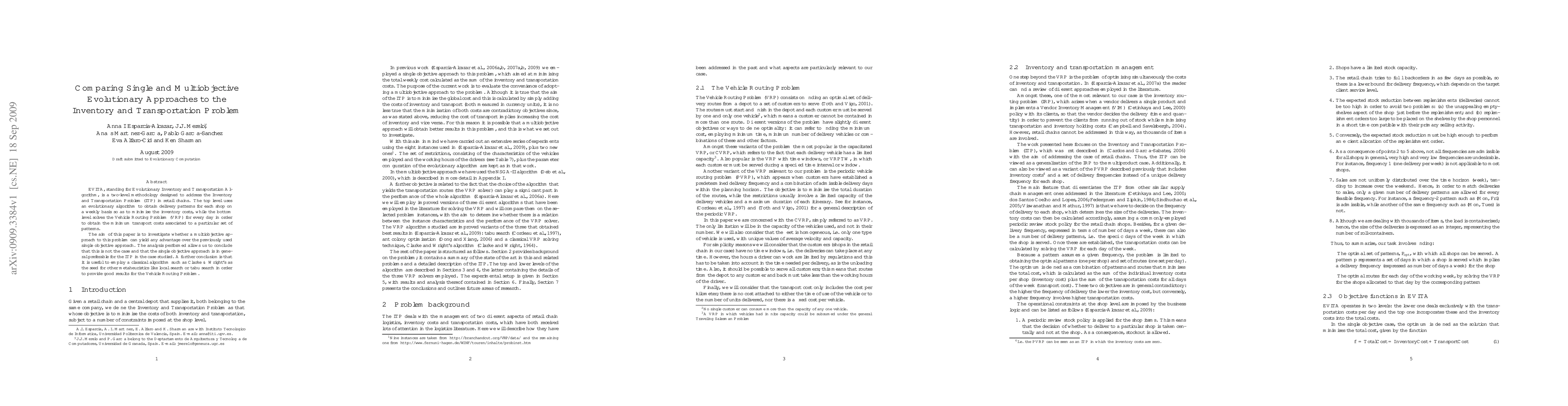 This paper compares single and multiobjective evolutionary approaches for solving the Inventory and Transportation Problem (ITP) in retail chains. The study finds that the single objective approach, using EVITA, is generally preferable over the multiobjective approach, while also highlighting the utility of Clarke & Wright's algorithm as a good starting point for metaheuristics in solving the Vehicle Routing Problem.