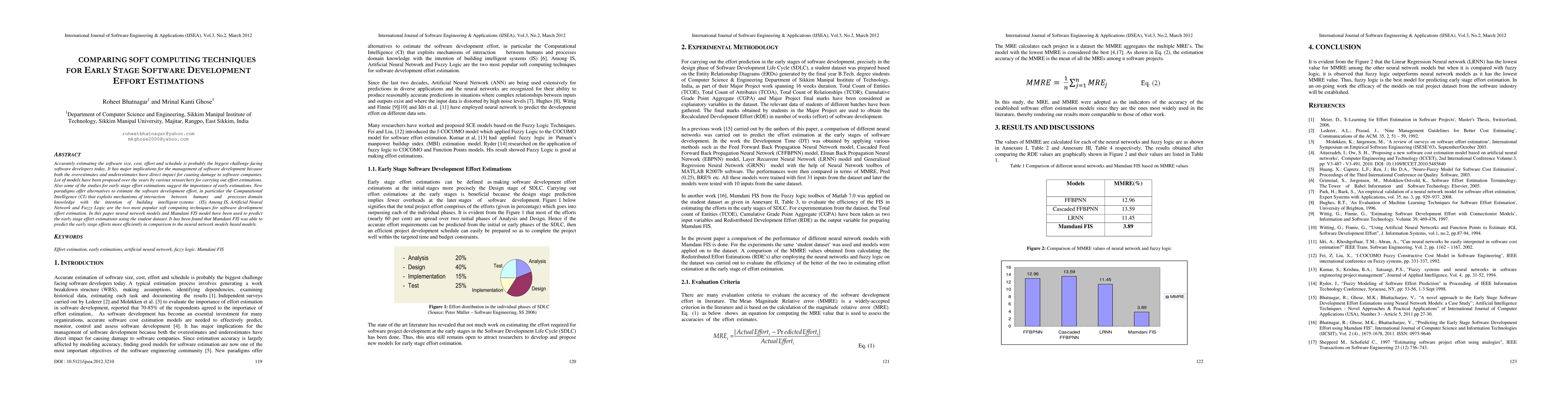 Accurately estimating the software size, cost, effort and schedule is probably the biggest challenge facing software developers today. It has major implications for the management of software development because both the overestimates and underestimates have direct impact for causing damage to software companies. Lot of models have been proposed over the years by various researchers for carrying out effort estimations. Also some of the studies for early stage effort estimations suggest the importance of early estimations. New paradigms offer alternatives to estimate the software development effort, in particular the Computational Intelligence (CI) that exploits mechanisms of interaction between humans and processes domain knowledge with the intention of building intelligent systems (IS). Among IS, Artificial Neural Network and Fuzzy Logic are the two most popular soft computing techniques for software development effort estimation. In this paper neural network models and Mamdani FIS model have been used to predict the early stage effort estimations using the student dataset. It has been found that Mamdani FIS was able to predict the early stage efforts more efficiently in comparison to the neural network models based models.