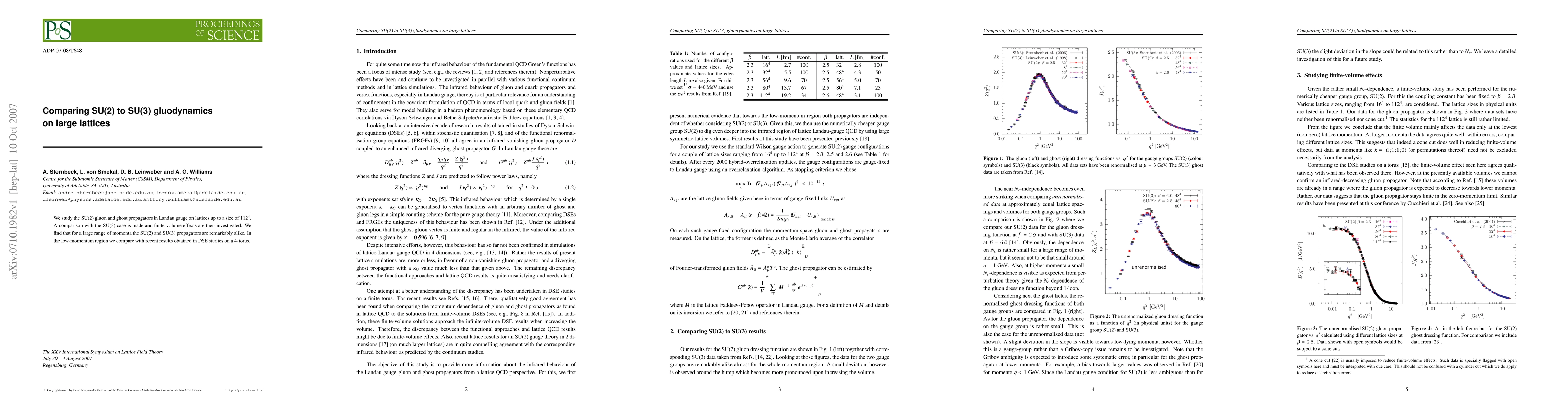 We study the SU(2) gluon and ghost propagators in Landau gauge on lattices up to a size of 112^4. A comparison with the SU(3) case is made and finite-volume effects are then investigated. We find that for a large range of momenta the SU(2) and SU(3) propagators are remarkably alike. In the low-momentum region we compare with recent results obtained in DSE studies on a 4-torus.