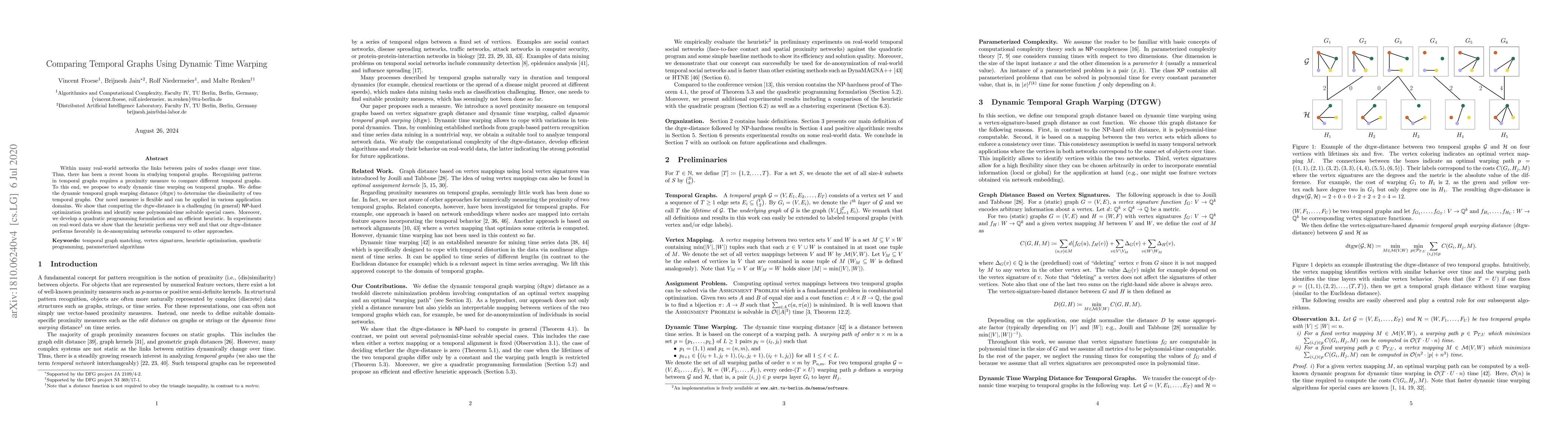 This paper proposes a novel dynamic temporal graph warping distance (dtgw) to measure the dissimilarity between temporal graphs, which are networks where links change over time. The authors demonstrate that computing the dtgw-distance is NP-hard but develop a heuristic and polynomial-time solutions for special cases, showing its effectiveness in de-anonymizing networks in experiments.