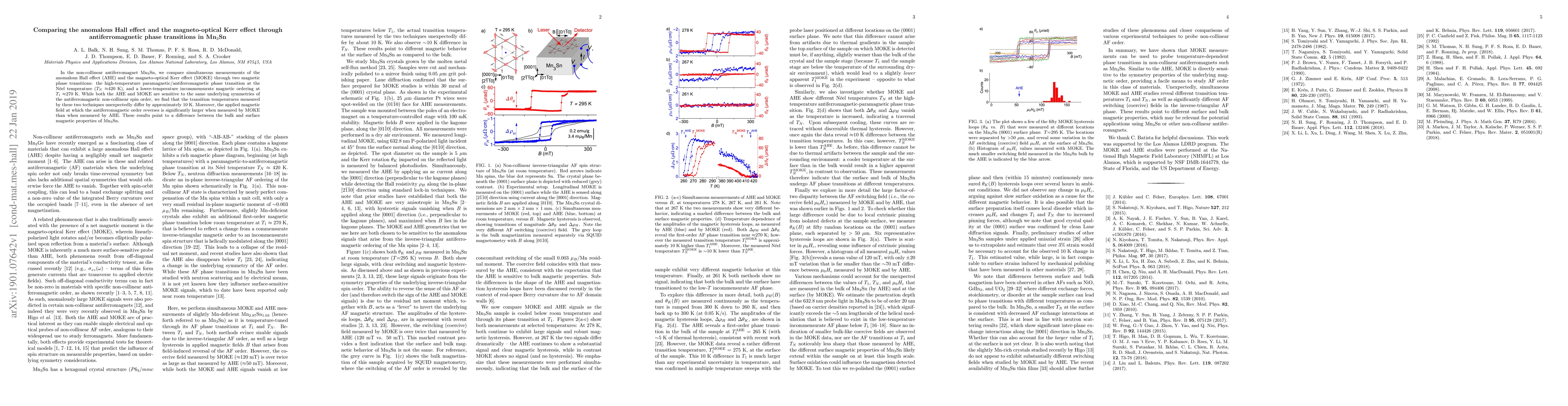 In the non-collinear antiferromagnet Mn$_3$Sn, we compare simultaneous measurements of the anomalous Hall effect (AHE) and the magneto-optical Kerr effect (MOKE) through two magnetic phase transitions: the high-temperature paramagnetic/antiferromagnetic phase transition at the N\'eel temperature ($T_N \approx$420~K), and a lower-temperature incommensurate magnetic ordering at $T_1 \approx$270~K. While both the AHE and MOKE are sensitive to the same underlying symmetries of the antiferromagnetic non-collinear spin order, we find that the transition temperatures measured by these two techniques unexpectedly differ by approximately 10~K. Moreover, the applied magnetic field at which the antiferromagnetic order reverses is significantly larger when measured by MOKE than when measured by AHE. These results point to a difference between the bulk and surface magnetic properties of Mn$_3$Sn.