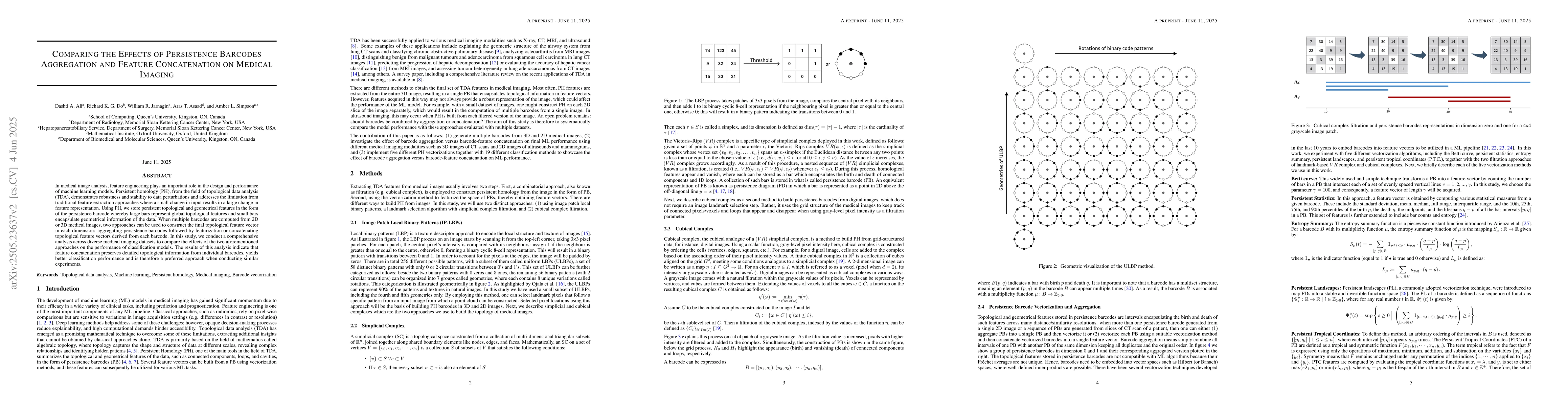 The paper presents a comprehensive analysis comparing persistence barcode aggregation and feature concatenation, demonstrating that concatenation is superior for constructing topological feature vectors in medical imaging.