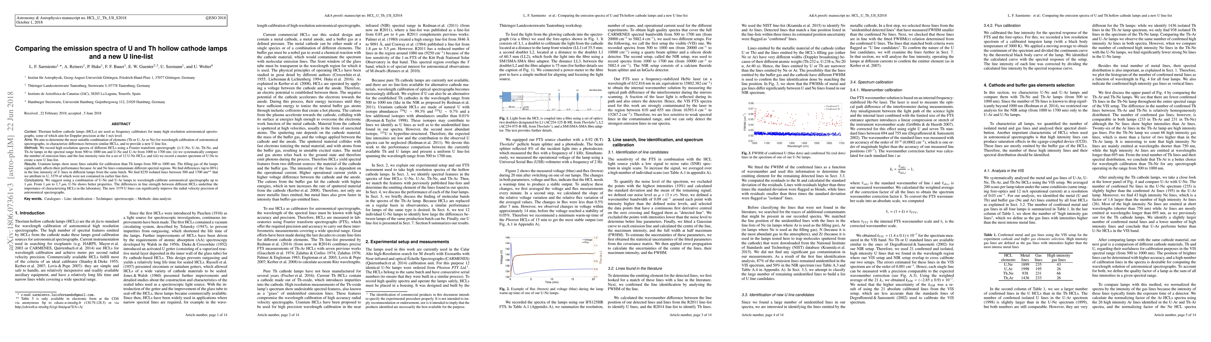 Thorium hollow cathode lamps (HCLs) are used as frequency calibrators for many high resolution astronomical spectrographs, some of which aim for Doppler precision at the 1 m/s level. We aim to determine the most suitable combination of elements (Th or U, Ar or Ne) for wavelength calibration of astronomical spectrographs, to characterize differences between similar HCLs, and to provide a new U line-list. We record high resolution spectra of different HCLs using a Fourier transform spectrograph: (i) U-Ne, U-Ar, Th-Ne, and Th-Ar lamps in the spectral range from 500 to 1000 nm and U-Ne and U-Ar from 1000 to 1700 nm; (ii) we systematically compare the number of emission lines and the line intensity ratio for a set of 12 U-Ne HCLs; and (iii) we record a master spectrum of U-Ne to create a new U line-list. Uranium lamps show more lines suitable for calibration than Th lamps from 500 to 1000 nm. The filling gas of the lamps significantly affects their performance because Ar and Ne lines contaminate different spectral regions. We find differences (up to 88 %) in the line intensity of U lines in different lamps from the same batch. We find 8239 isolated lines between 500 and 1700 nm that we attribute to U, 3379 of which were not contained in earlier line-lists. The U line-list is available at the http://www.astro.physik.uni-goettingen.de/research/U_atlas . We suggest using a combination of U-Ne and U-Ar lamps to wavelength-calibrate astronomical spectrographs up to 1000 nm. From 1000 to 1700 nm, U-Ne shows better properties. The differences in line strength between different HCLs underline the importance of characterizing HCLs in the laboratory. The new 3379 U lines can significantly improve the radial velocity precision of astronomical spectrographs.